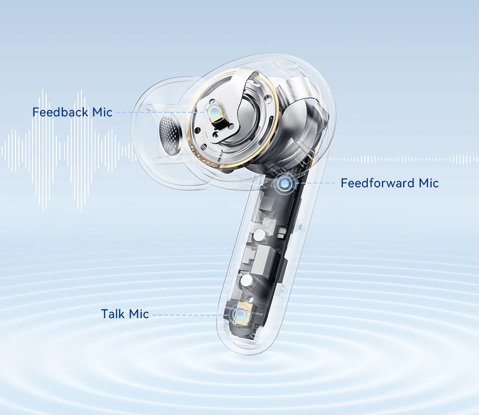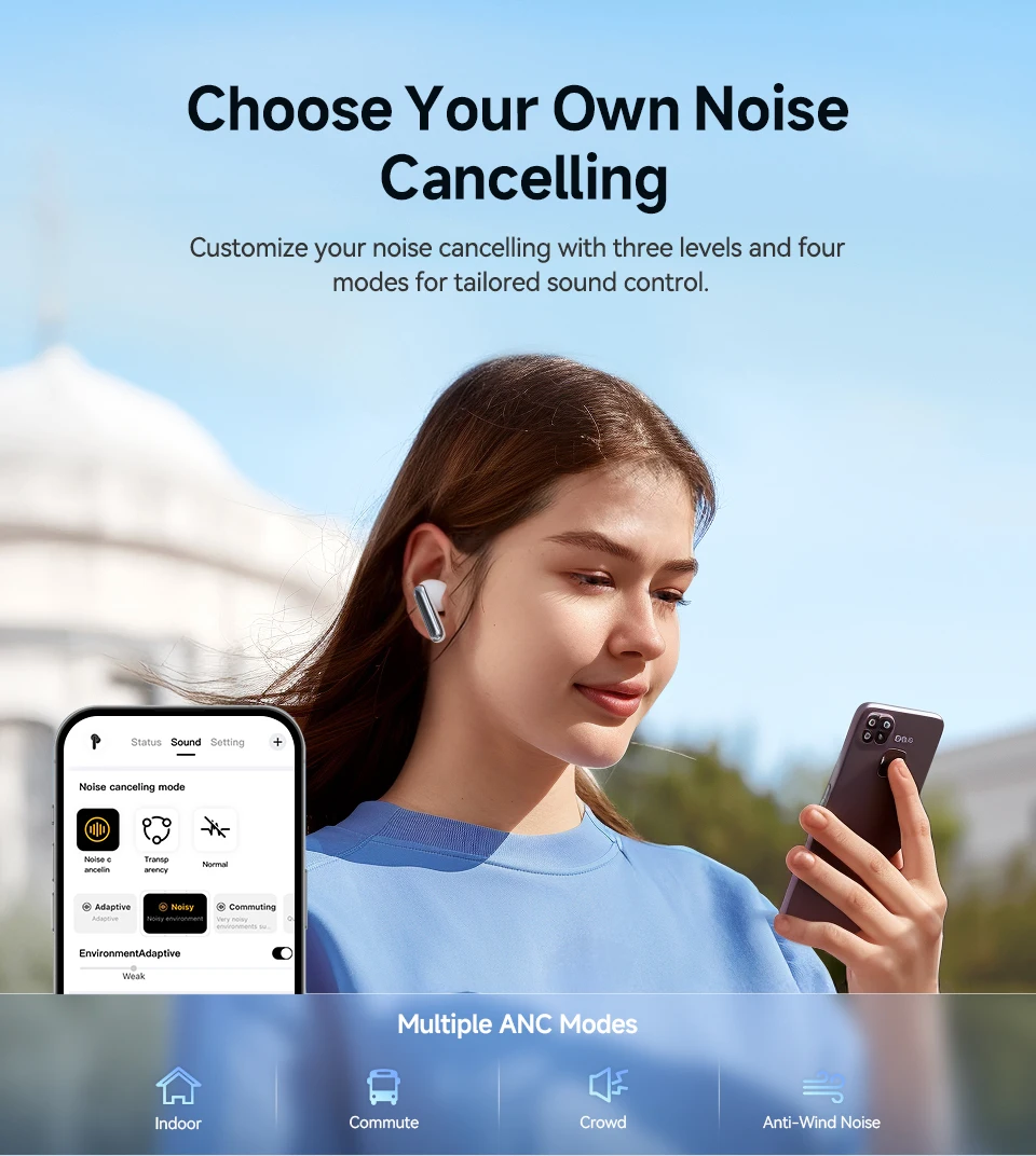 Assuma o controle do seu som ambiente com o modo de transparência.Desfrute de música pura enquanto se preocupa com vozes e notificações importantes, garantindo segurança em qualquer lugar.