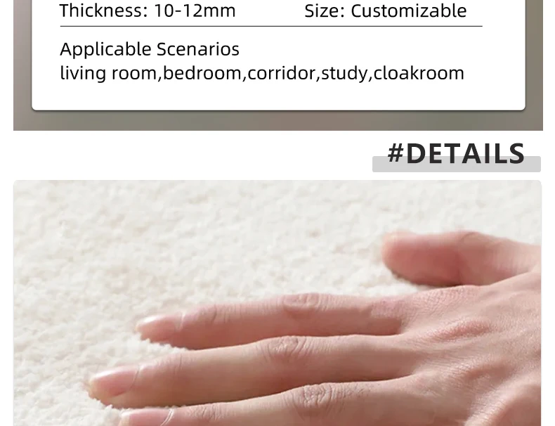 O tapete é de pelúcia macia e fofa.É confortável ao toque, fundo de plástico antiderrapante. Adequado para vários cenários, como quarto, cabeceira, sala de estar, etc.