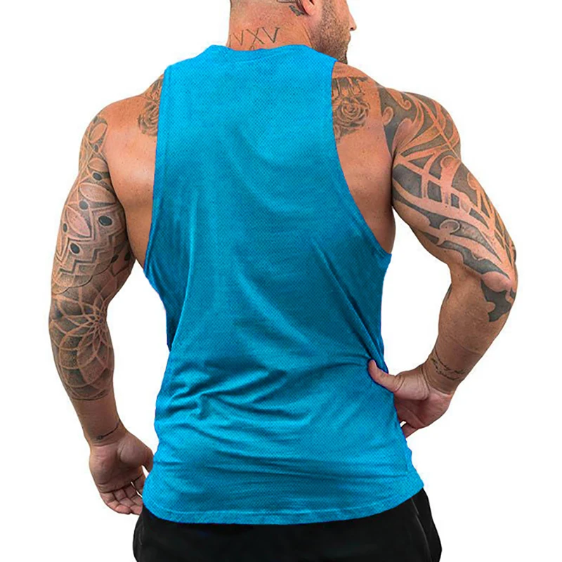 - > Quick Dry malha ginásio t-shirt dos homens, colete muscular respirável, moletom de jogging, Indoor Exercício, Fitness, ao ar livre