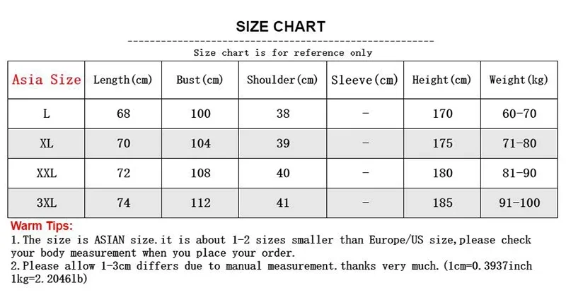 Dicas quentes: 1.O tamanho é o tamanho ASIAN. é cerca de 1-2 tamanhos menores do que o tamanho da Europa/EUA, por favor checkyour medição do corpo quando você coloca o seu pedido.2.Please permitir 1-3cm difere devido à medição manual.