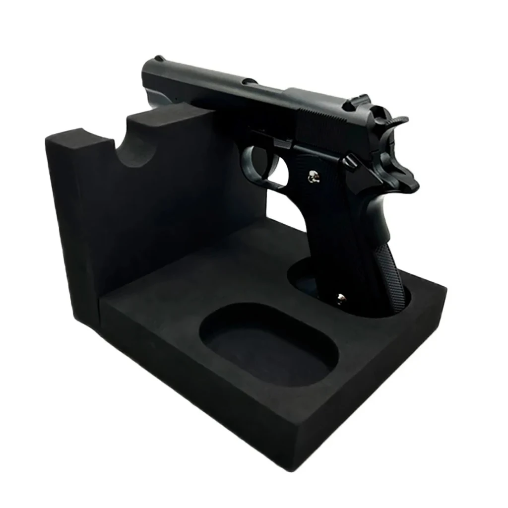 Nossos suportes para armas de pistola são feitos de materiais EVA de alta qualidade e ecológicos; eles são densos o suficiente para dar um bom suporte, mas macios o suficiente para não danificar suas armas.