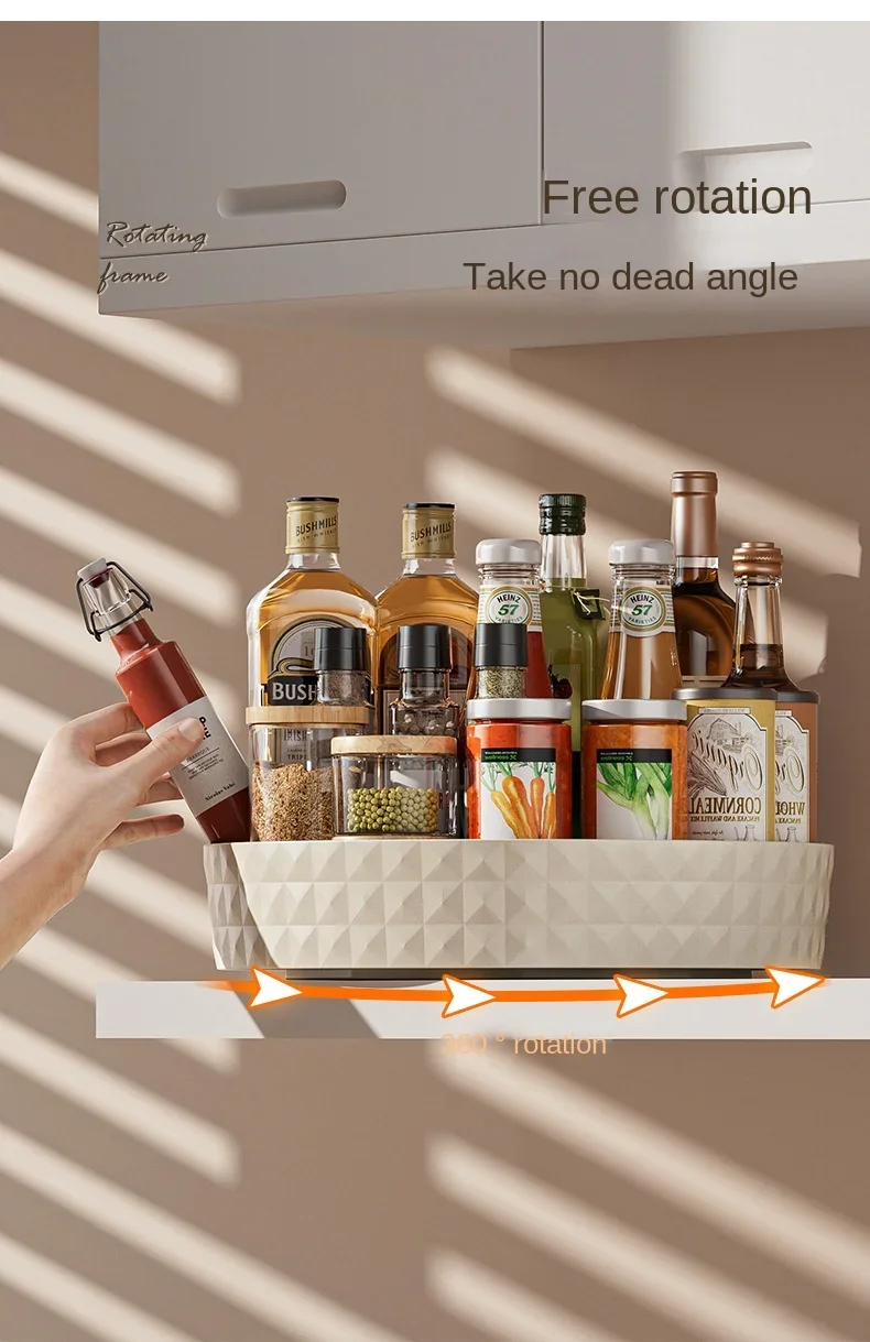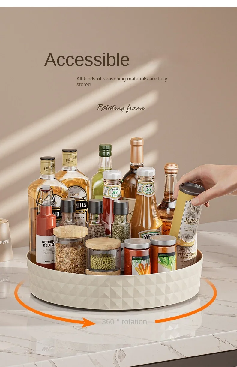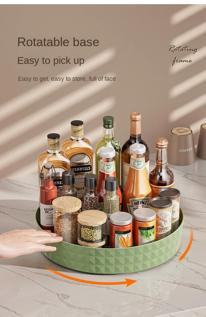 Rack de armazenamento de temperos rotativo 360, multifuncional, despensa, armário, plataforma giratória para cosméticos, acessórios de cozinha, bandeja organizadora