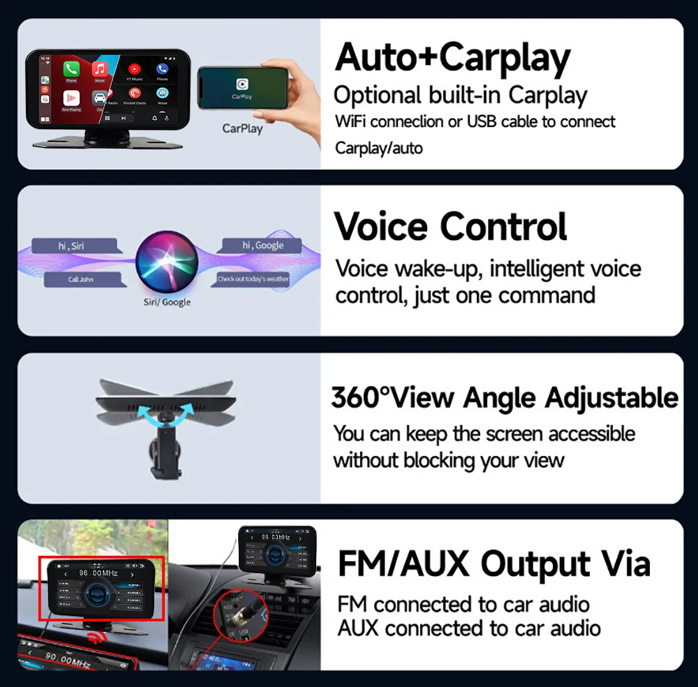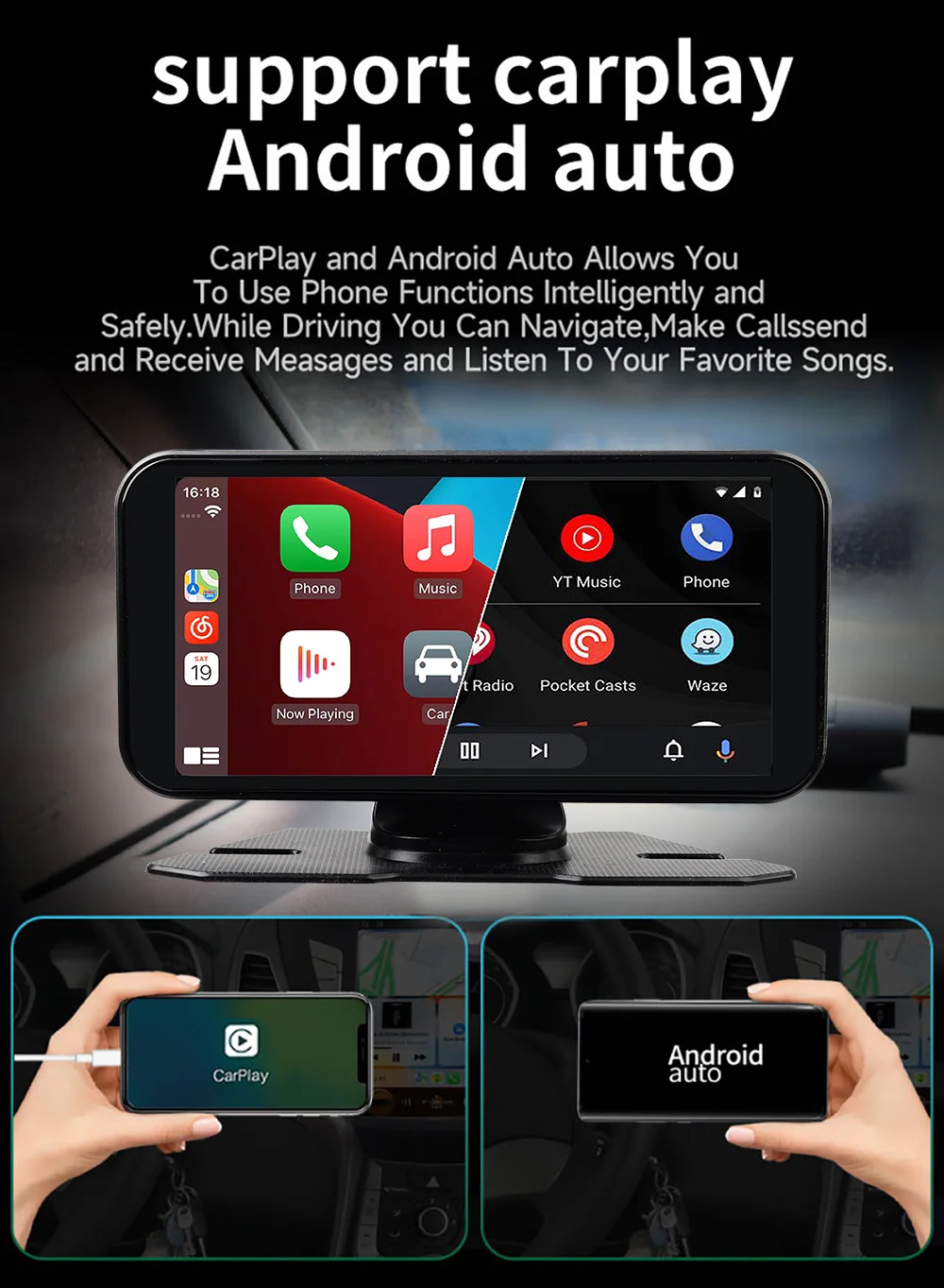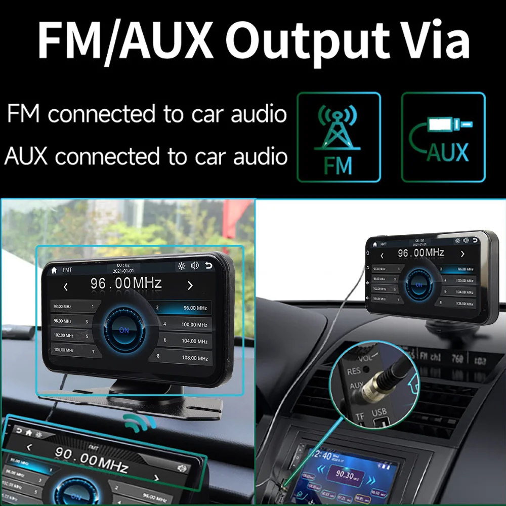 Rádio automotivo universal de 6 polegadas, sem fio, carplay, android, multimídia, navegação gps, reprodutor de vídeo, tela sensível ao toque portátil, bluetooth, aux