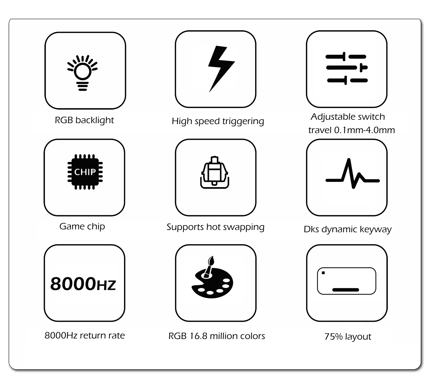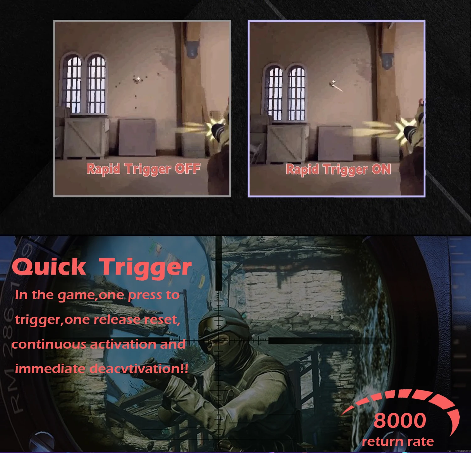1.Tecnologia de interruptor magnético: resposta instantânea.O teclado de eixo magnético Raven68 utiliza tecnologia de disparo de efeito Hall com interruptores magnéticos, oferecendo ação de parada imediata e atuação ultrarrápida para uma variedade de experiências táteis.