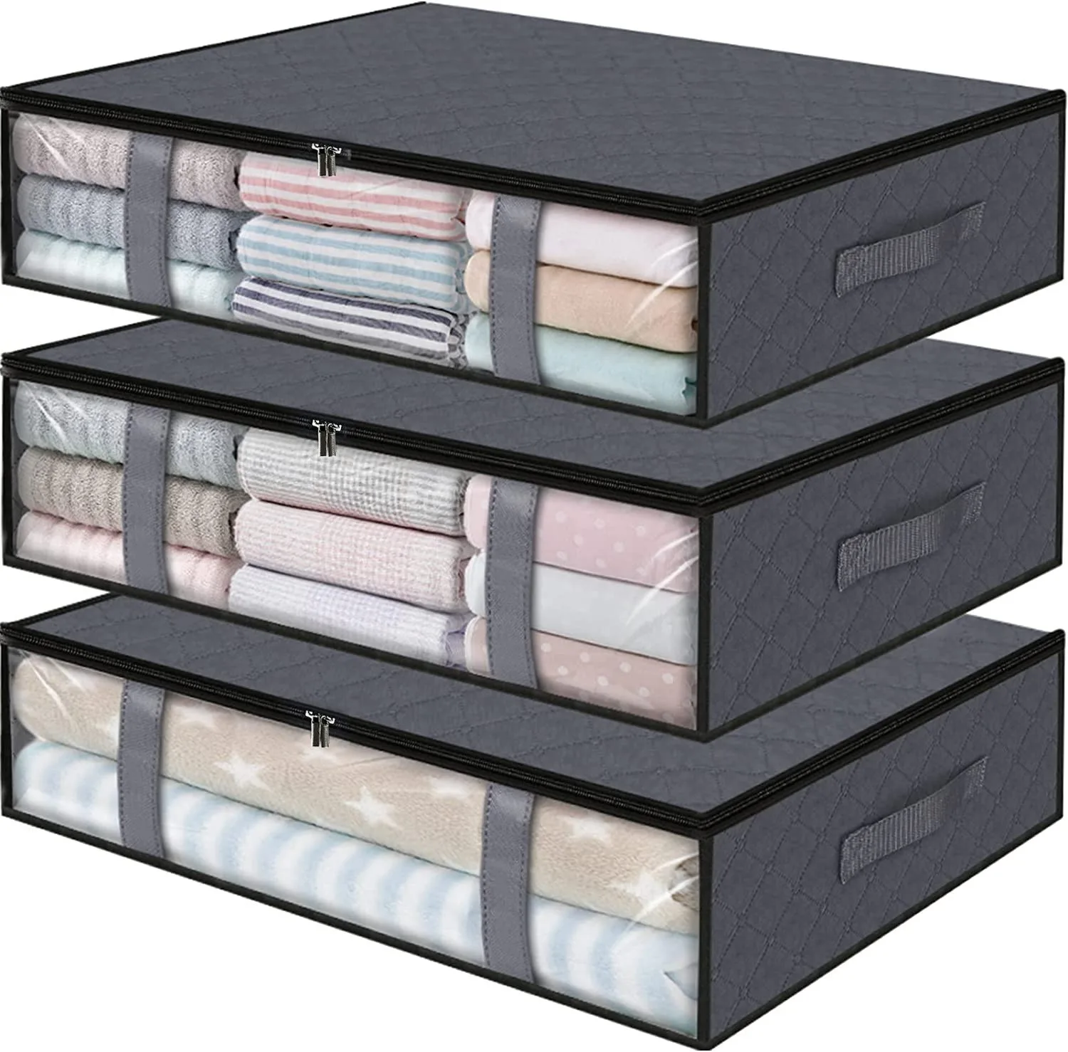 Recipientes de armazenamento dobráveis sob a cama com janela transparente, organizadores de brinquedos e sacos de armazenamento de roupas, caixas de armazenamento de armário