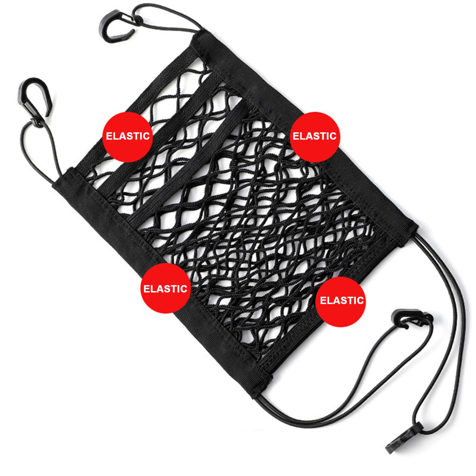 Gancho forte: O gancho deste saco de rede de armazenamento é feito de nylon PA, que é durável, forte em capacidade de carga e resistente a puxar. É adequado para todos os tipos de carros.