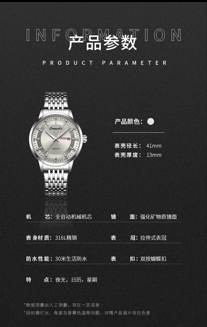 • Movimento Automático:Este relógio masculino possui um movimento totalmente automático, garantindo cronometragem precisa sem a necessidade de baterias.