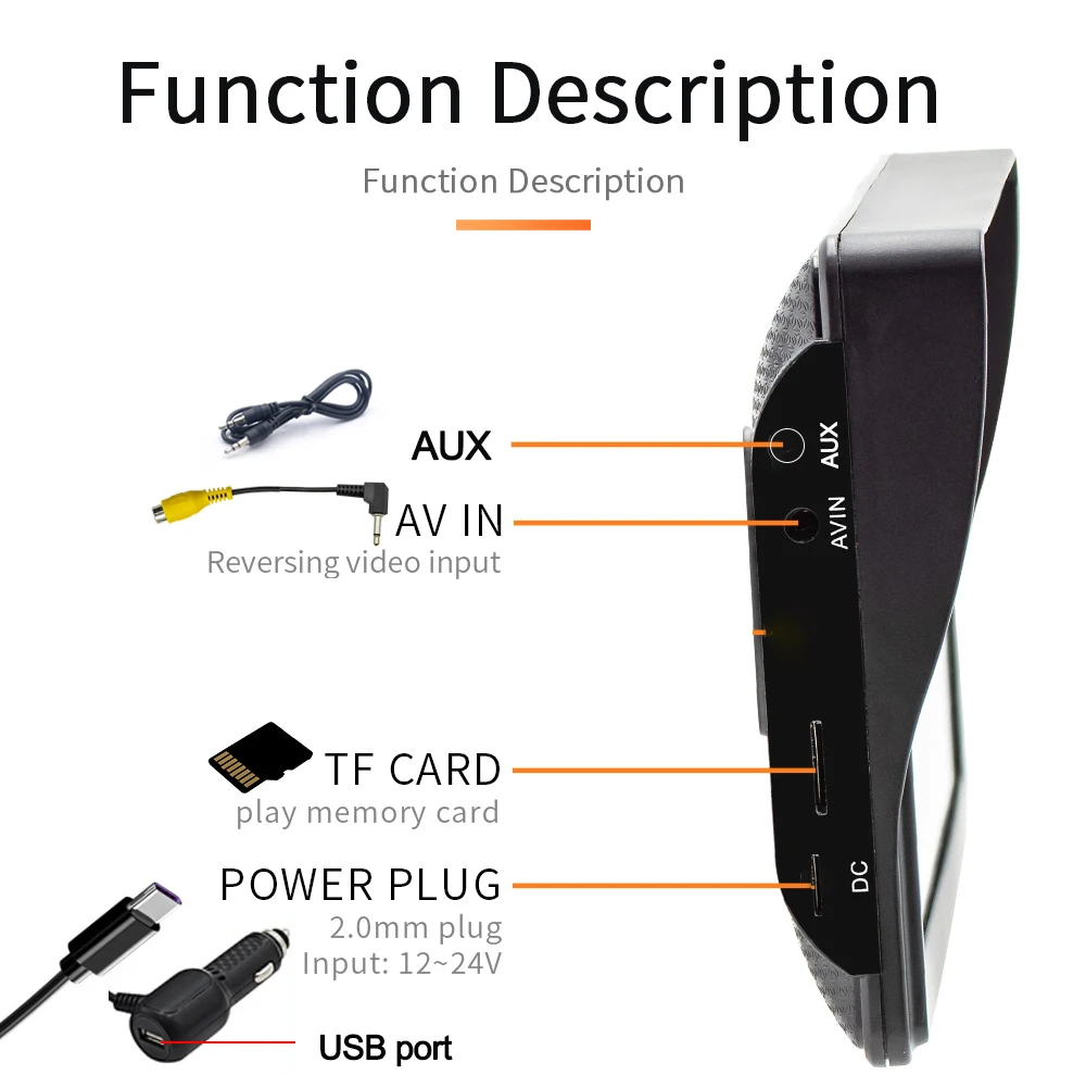 2.AUX: conecte o cabo aux à porta auxiliar original do seu carro se o seu carro tiver, para que você possa obter som diretamente do rádio original do carro.