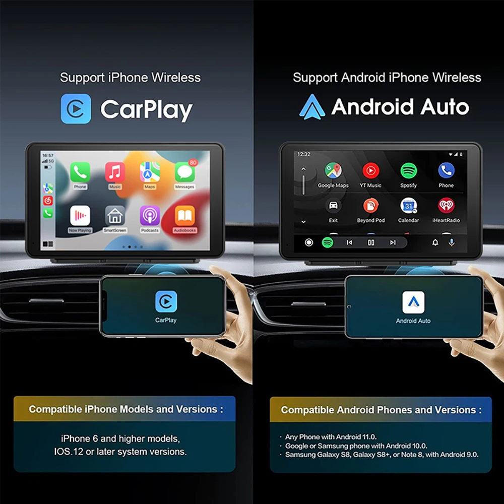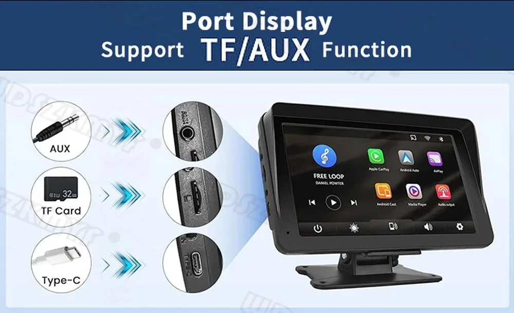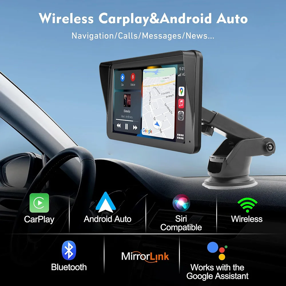 Reprodutor de vídeo multimídia universal de 7 polegadas Navegação GPS Carplay sem fio Apple Android Auto BT | Compatível com iOS e Android