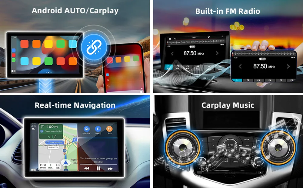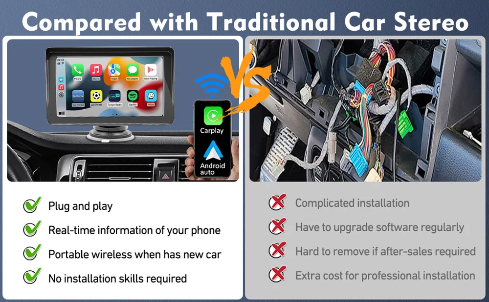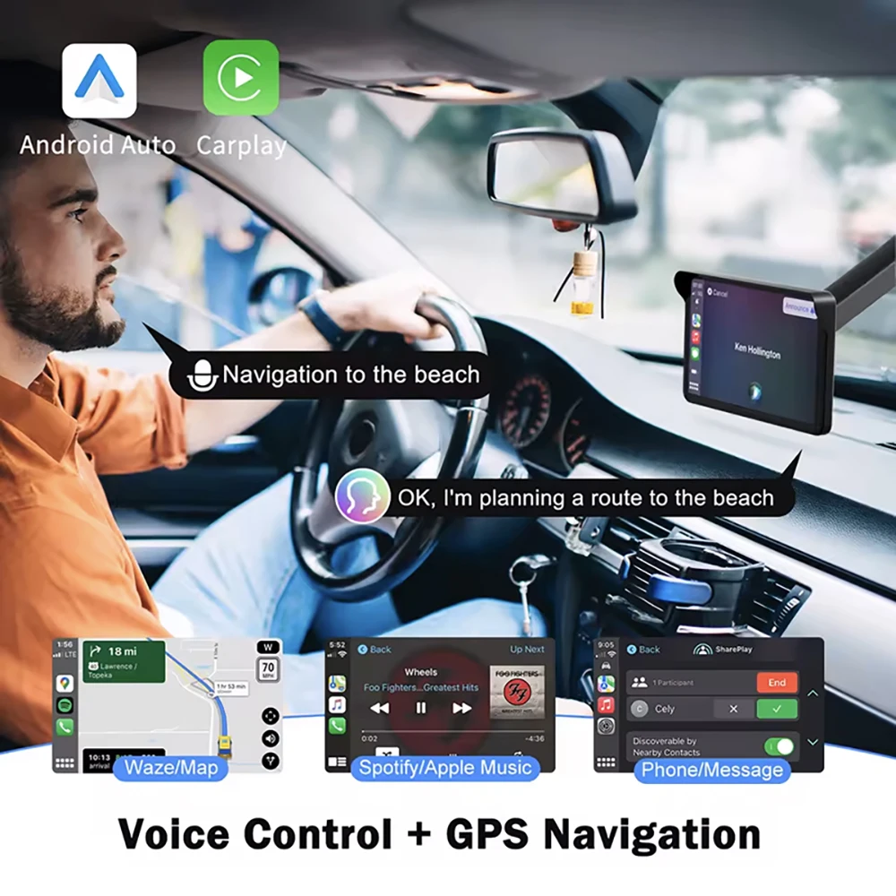 Leitor multimídia estéreo portátil com tela de toque sem fio de 7'' - Torne a condução mais inteligente e conveniente!