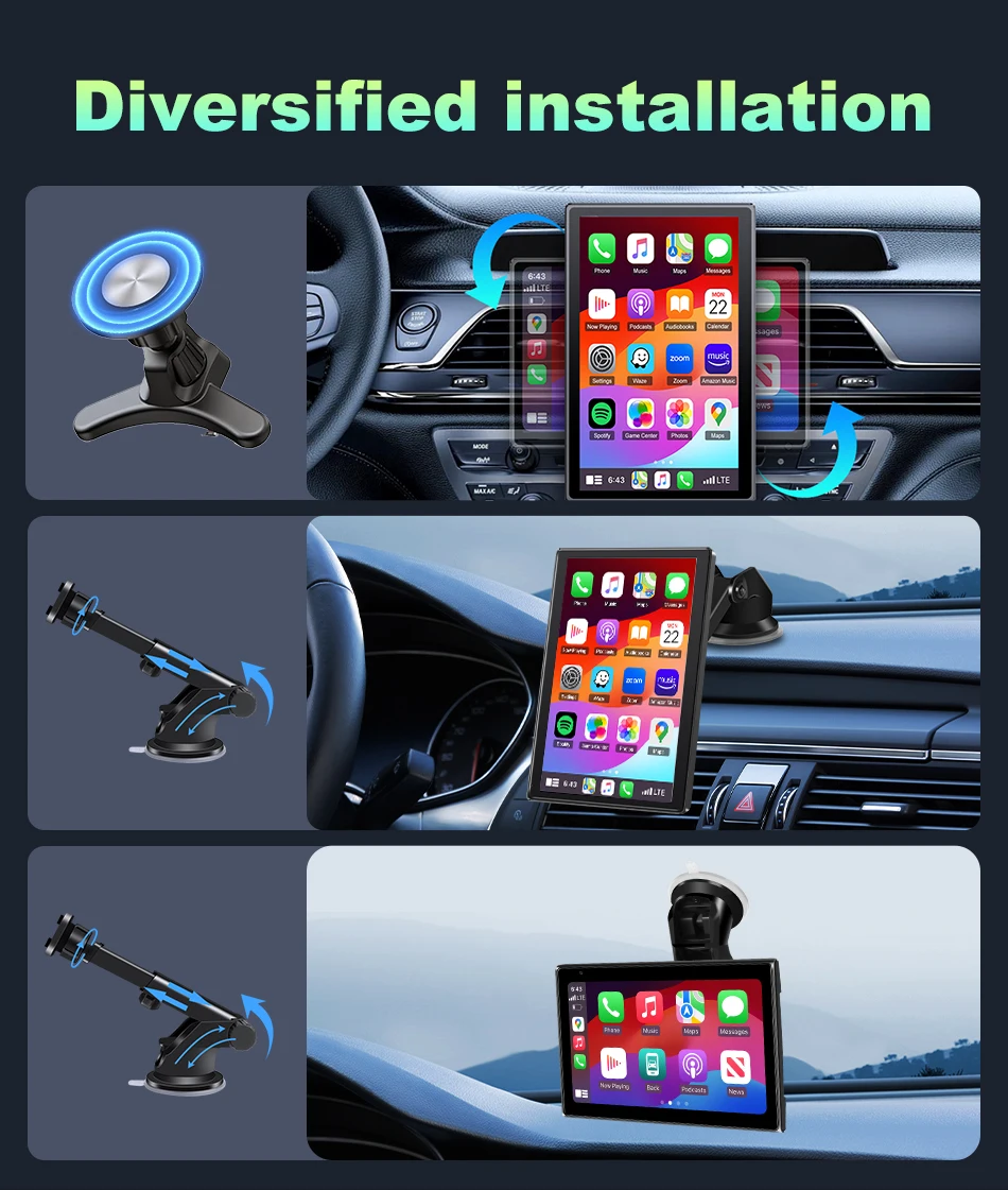 - > Reprodutor multimídia portátil de 7 polegadas, tela carplay ai, tela sensível ao toque ips, navegação gps, suporte bluetooth, tela horizontal/vertical