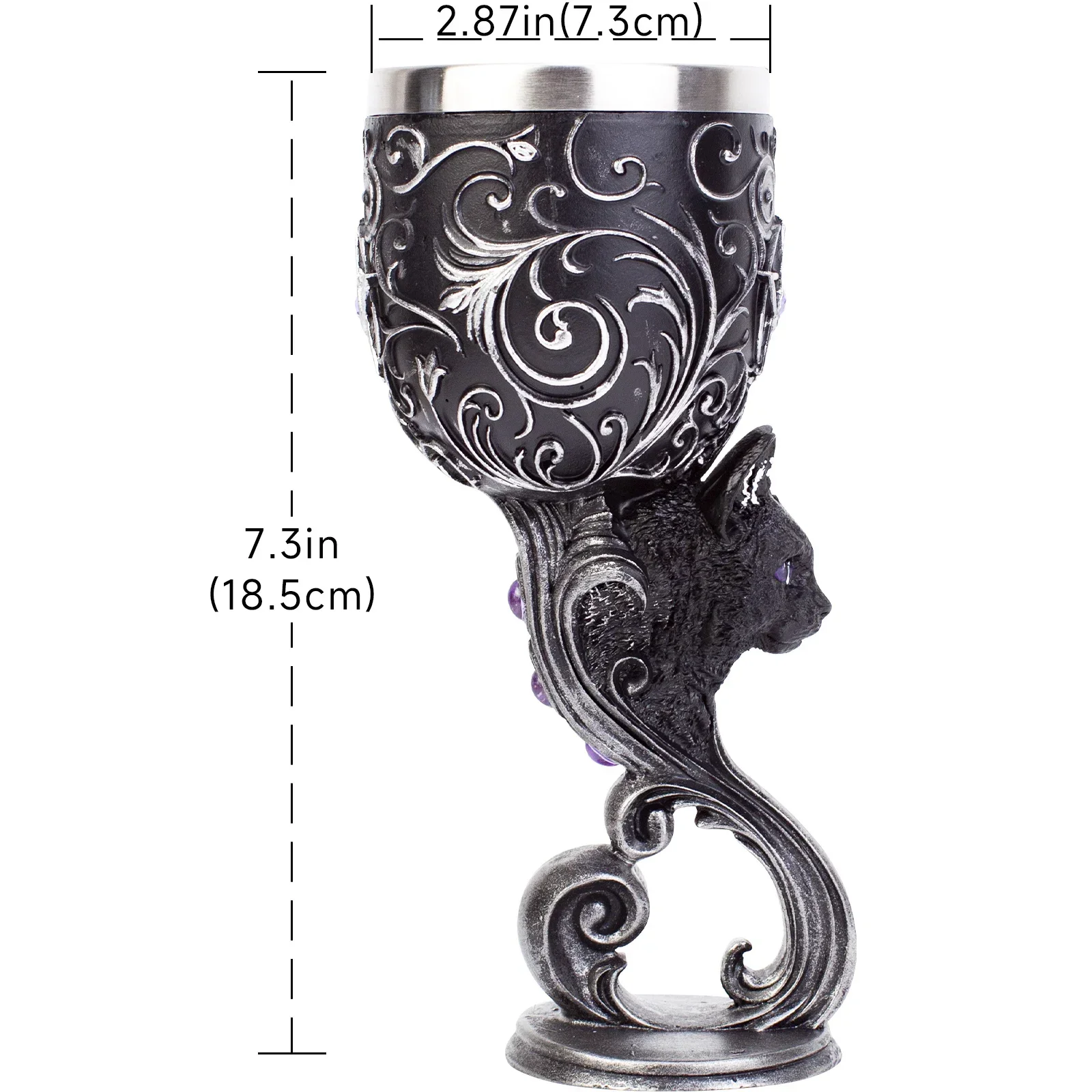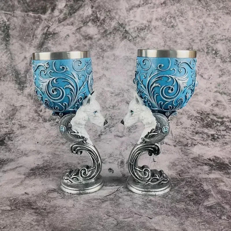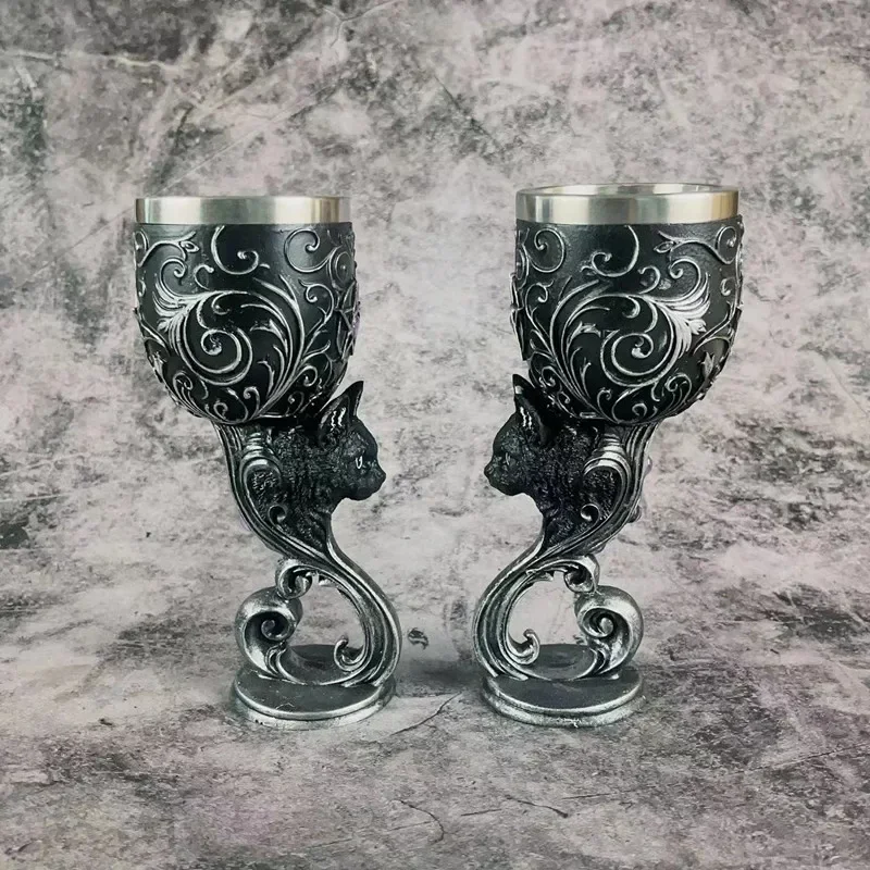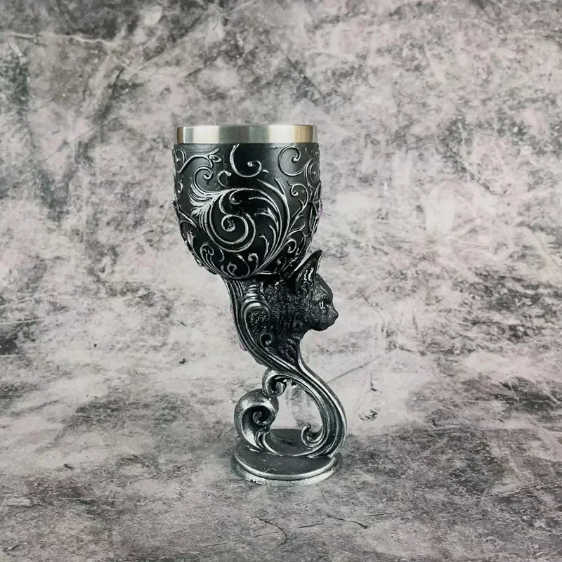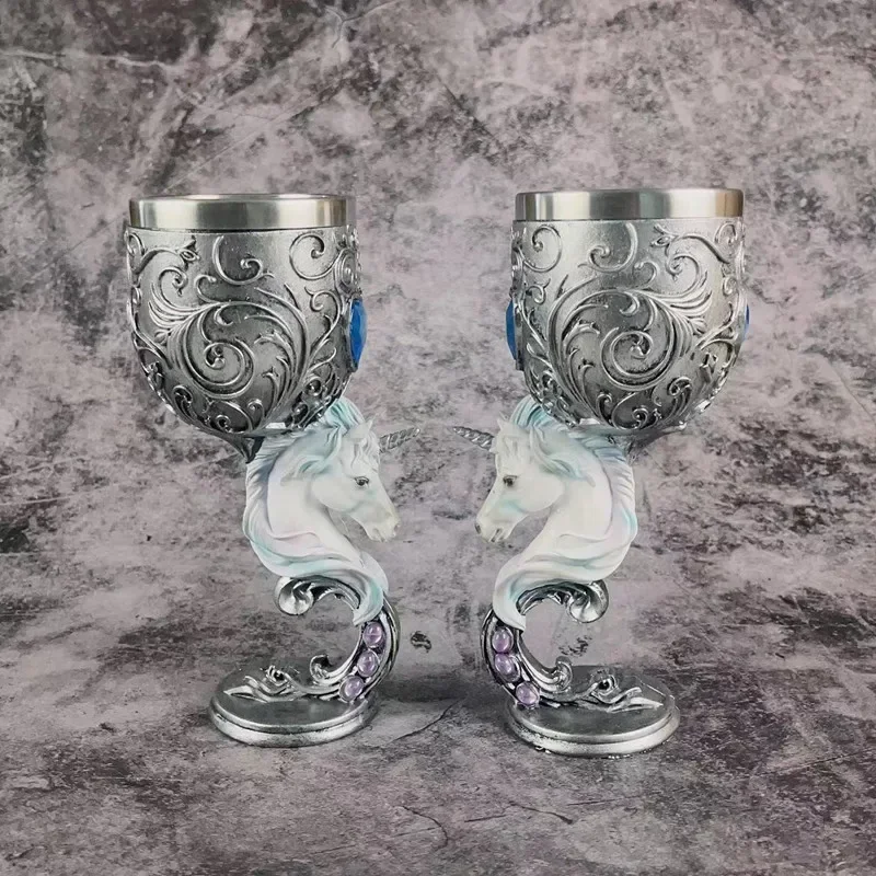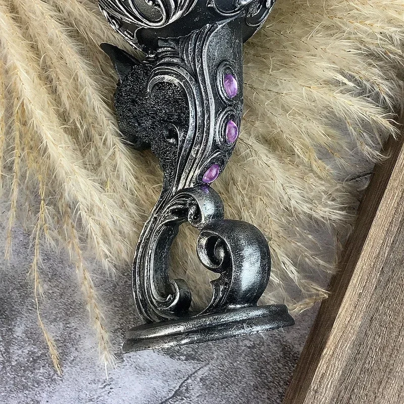 Estas taças são adornadas com detalhes barrocos prata intrincados subindo da base metálica para a borda de aço inoxidável, este Cálice é o complemento perfeito para qualquer coleção fascinante