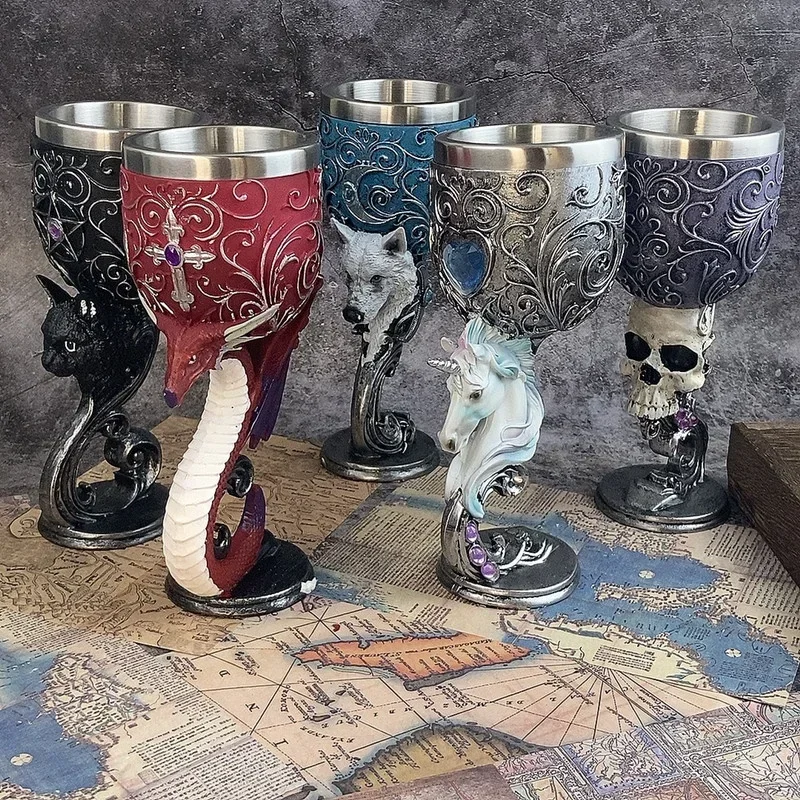 Resina esqueleto copo para vinho tinto, especial e retro cocktail, filme gótico, copo de água circundante