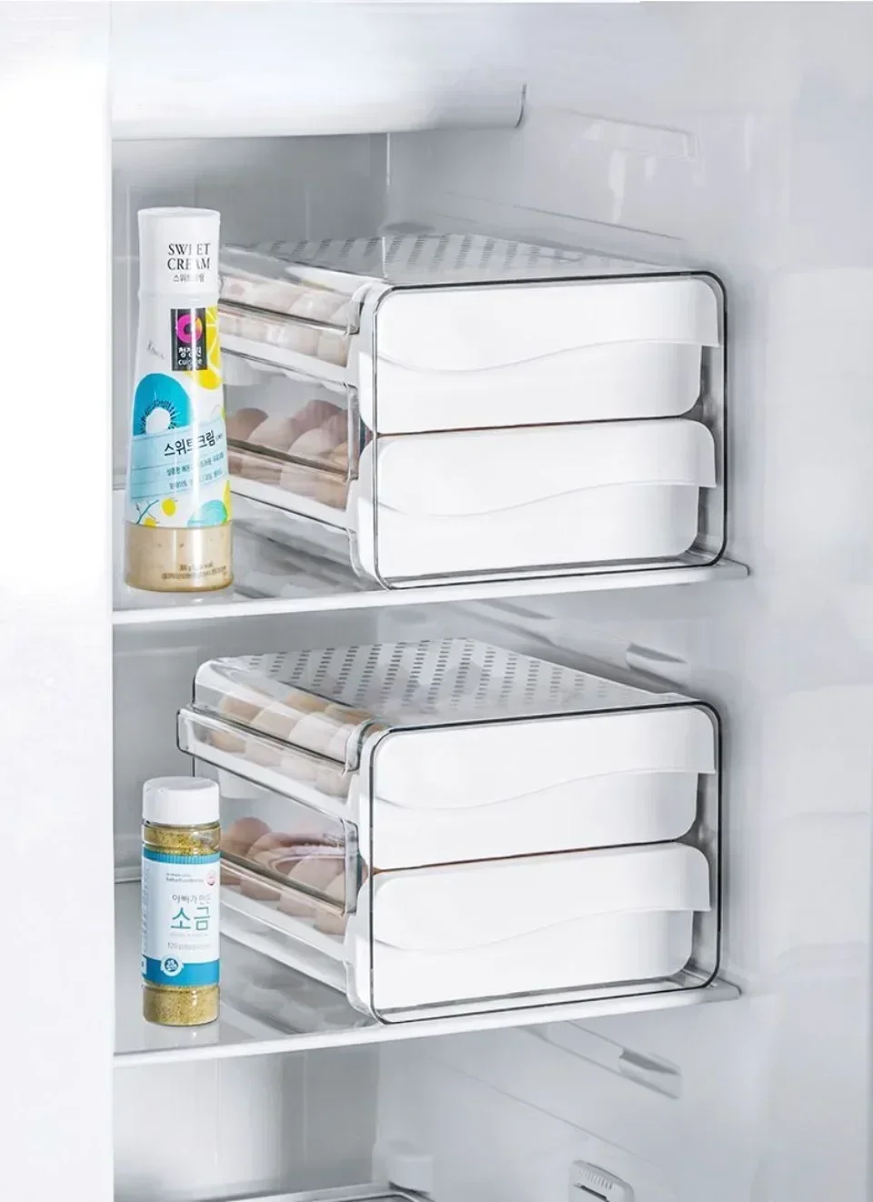 Rack de ovos de rolagem automática, caixa de armazenamento de ovos de geladeira, caixa de armazenamento de ovos, camada dupla, tipo gaveta, caixa de ovos de cozinha