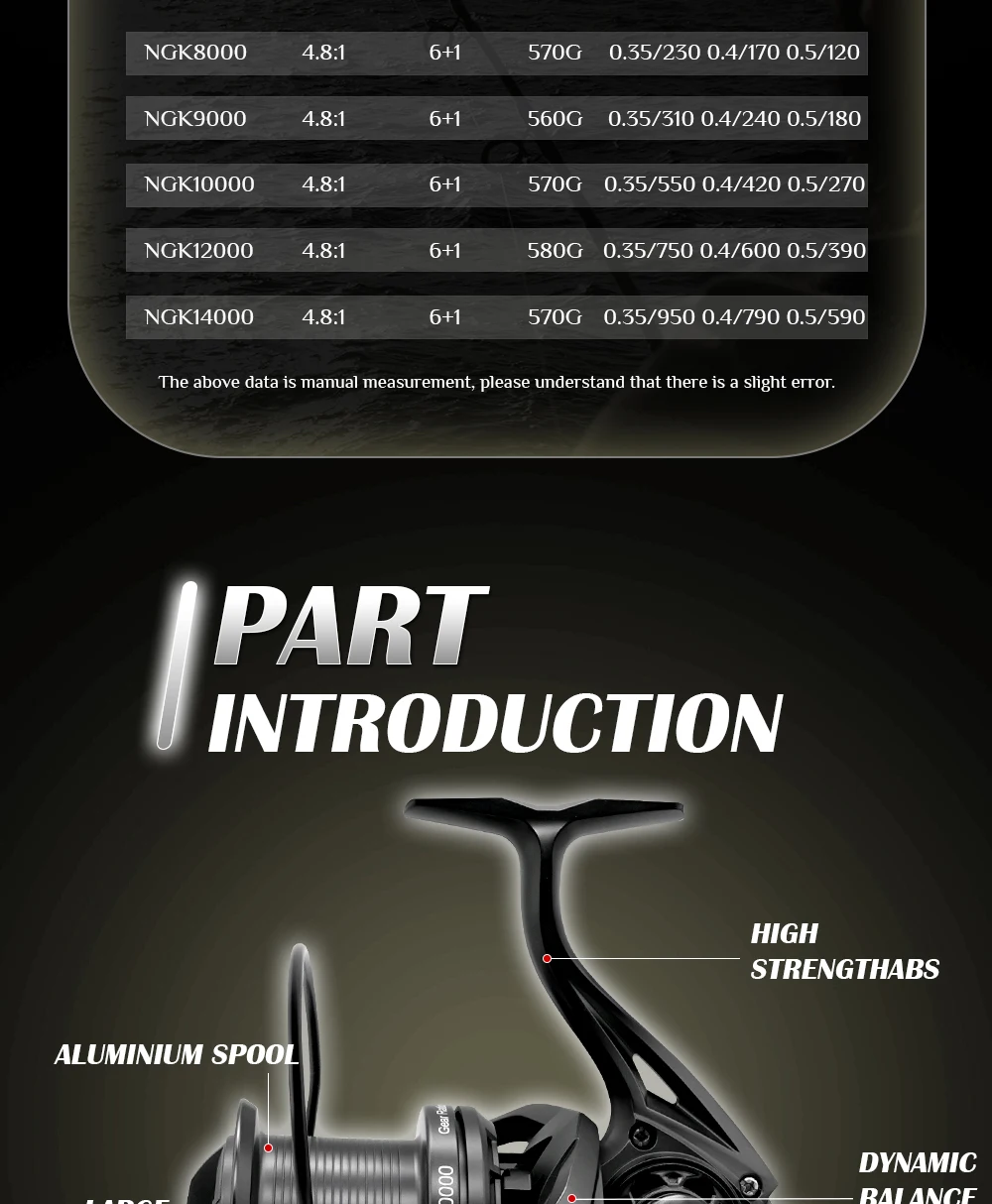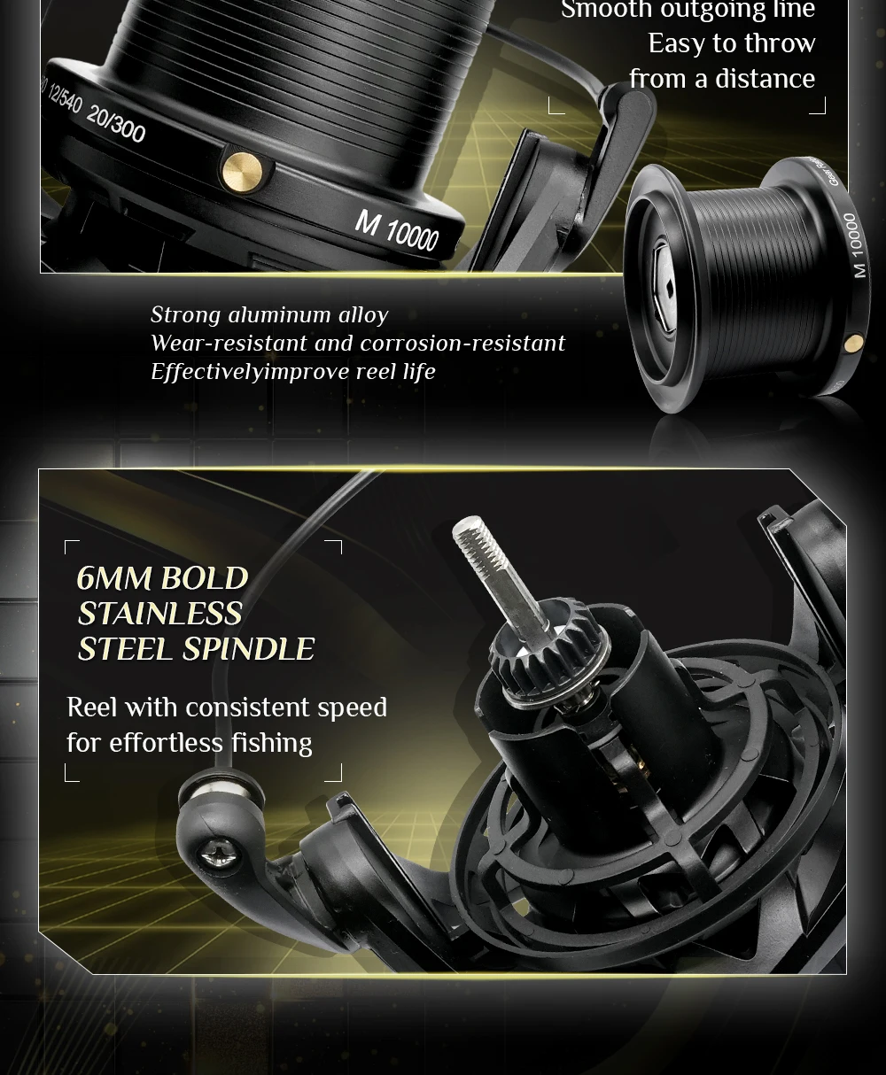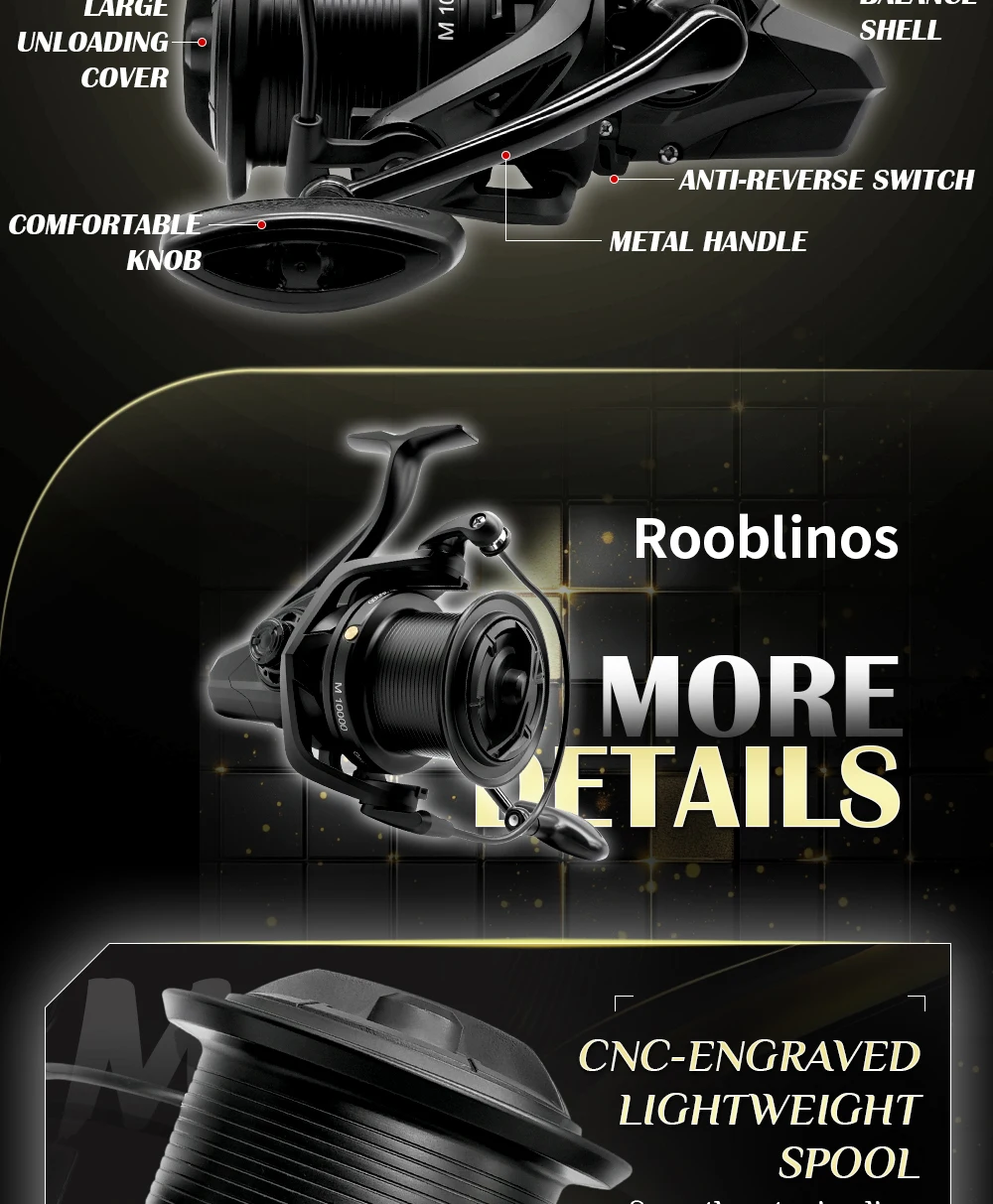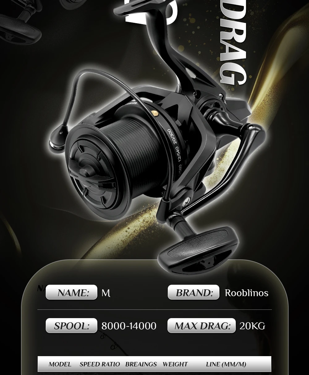 Rooblinos m carretel de carpa de água doce preto 8000-14000 4.8:1 relação de engrenagem carretel de pesca carretel de fiação de metal