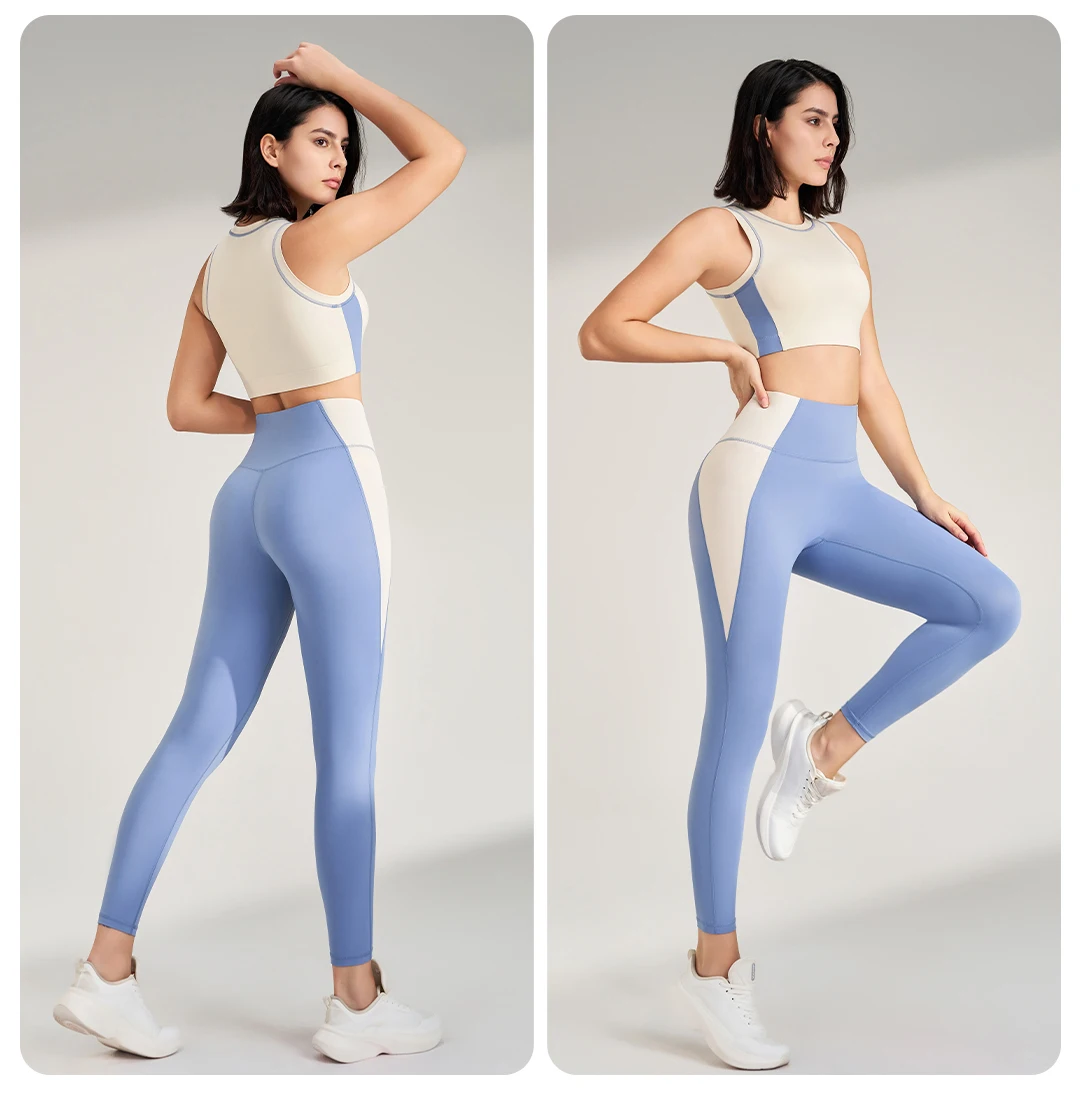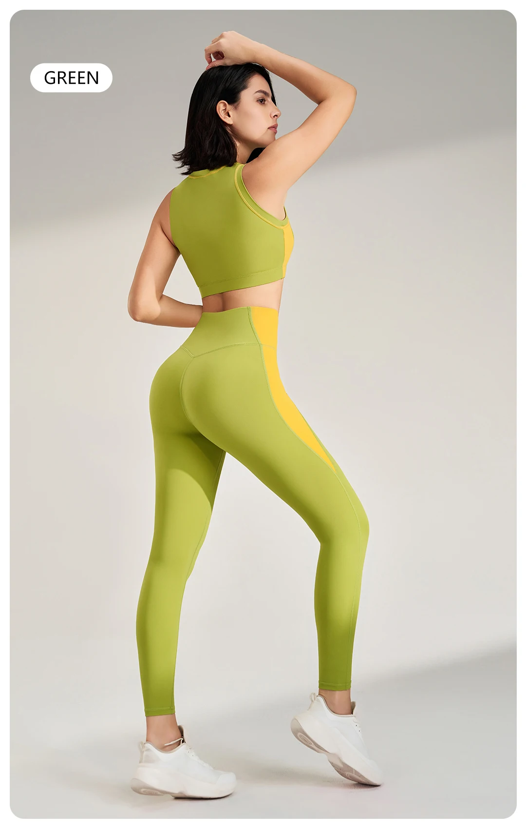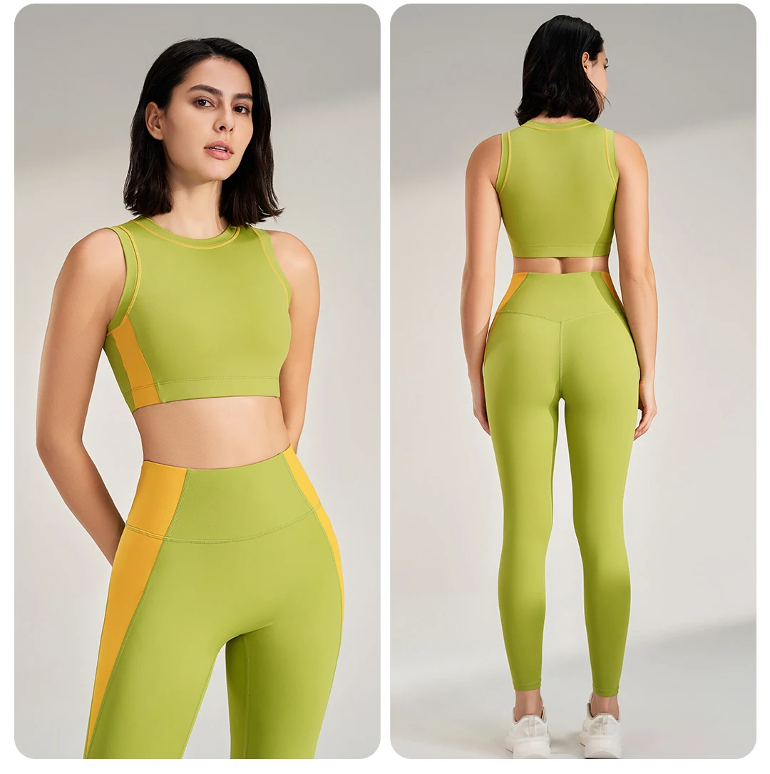 Roupas coloridas de secagem rápida para mulheres, roupa de treino de ginástica, camiseta recolhida, calças apertadas para levantar o quadril