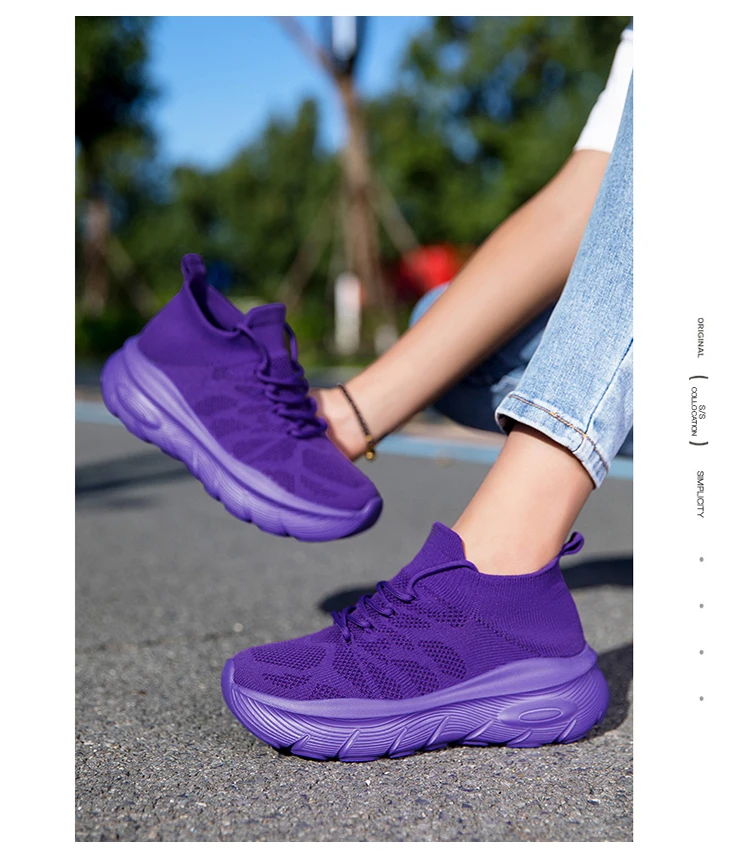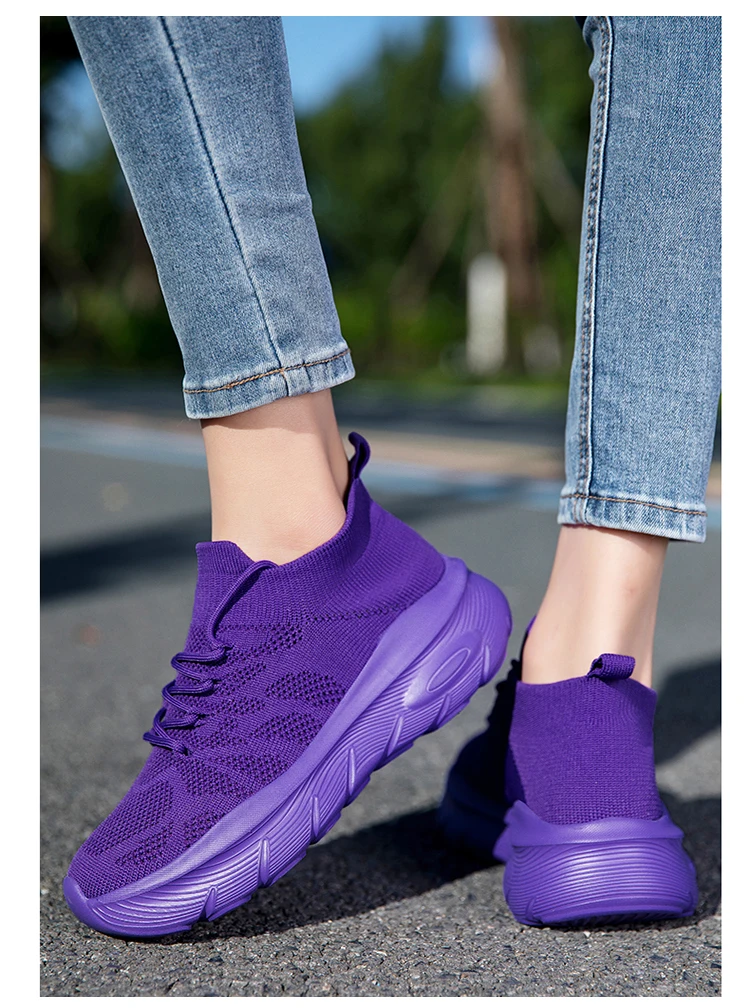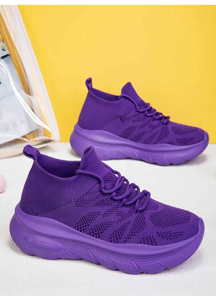 - > Roxo malha feminina designer meia sapatos verão malha respirável tênis feminino sapatos leves casuais unisex andando tênis de corrida