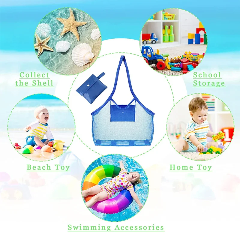 - > Saco portátil para armazenamento de praia para crianças Cestas de brinquedos dobráveis Sacos de natação ao ar livre Ferramenta de areia impermeável Saco de armazenamento de lixo