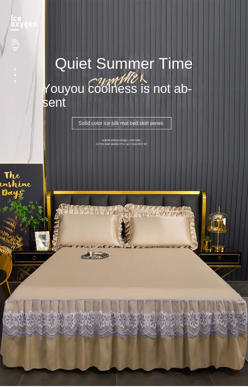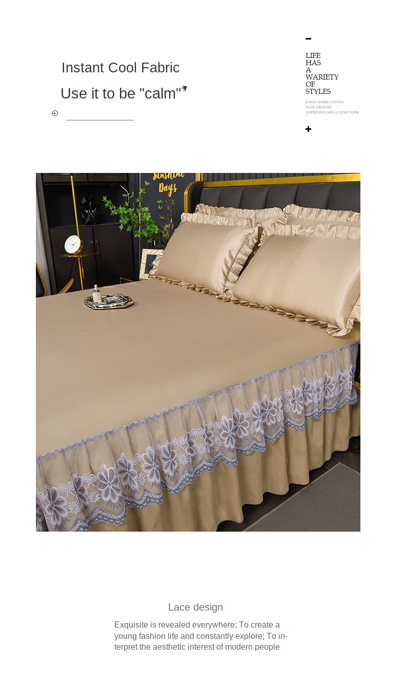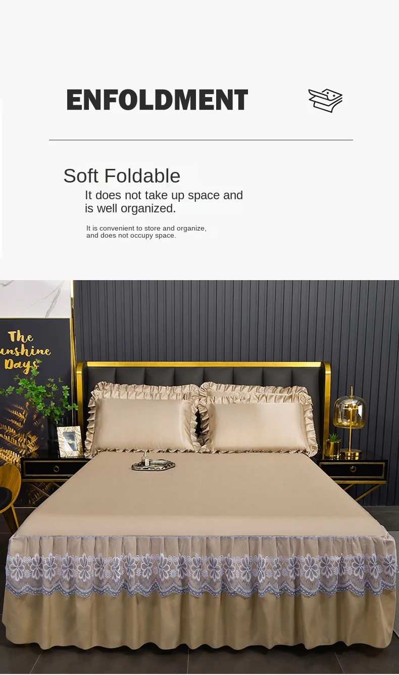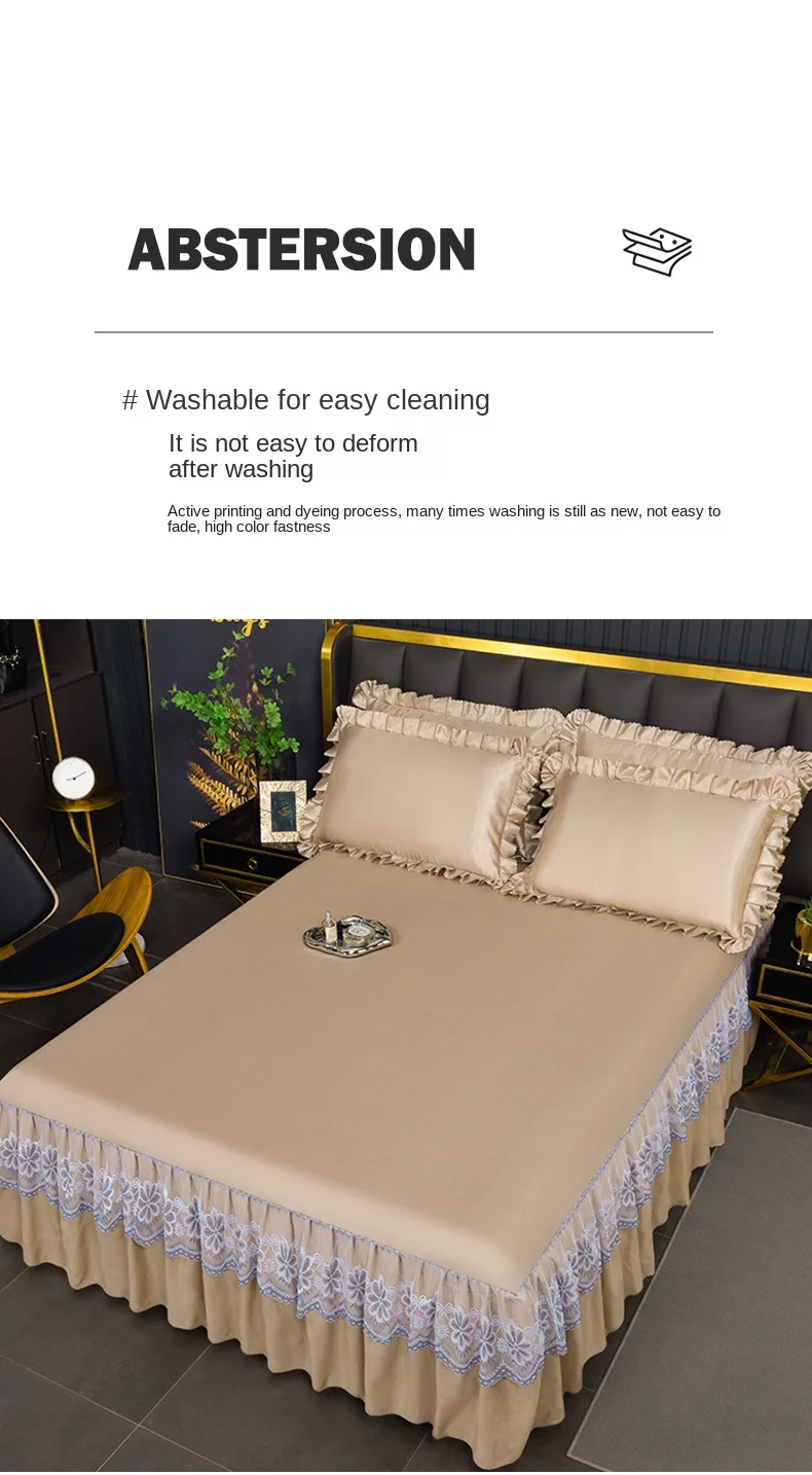 3 Pçs/set Modern Royal Lace Bed Saia Máquina Respirável Lavável Folhas Saia de cama com Elástico para cama Queen King Size