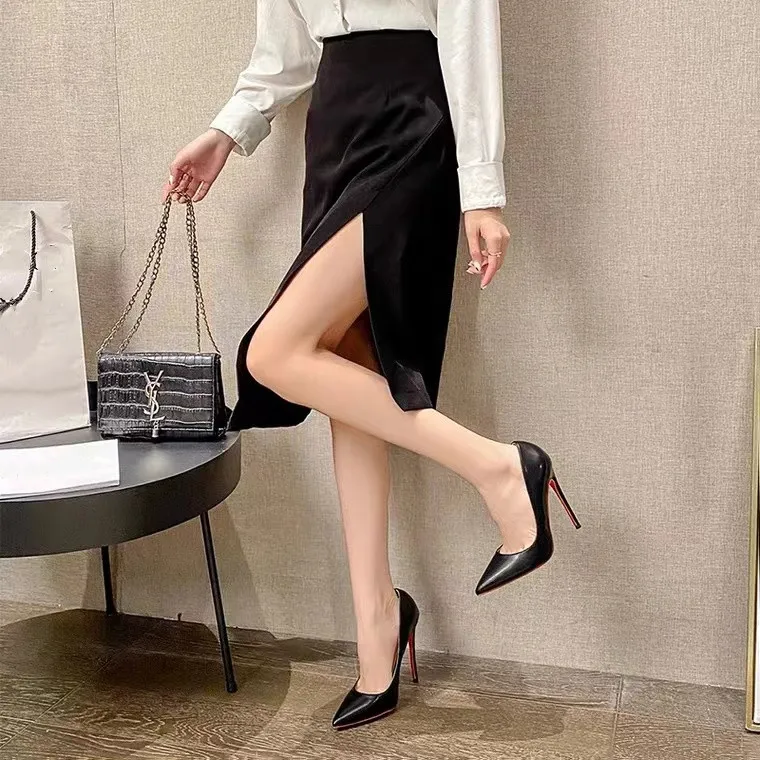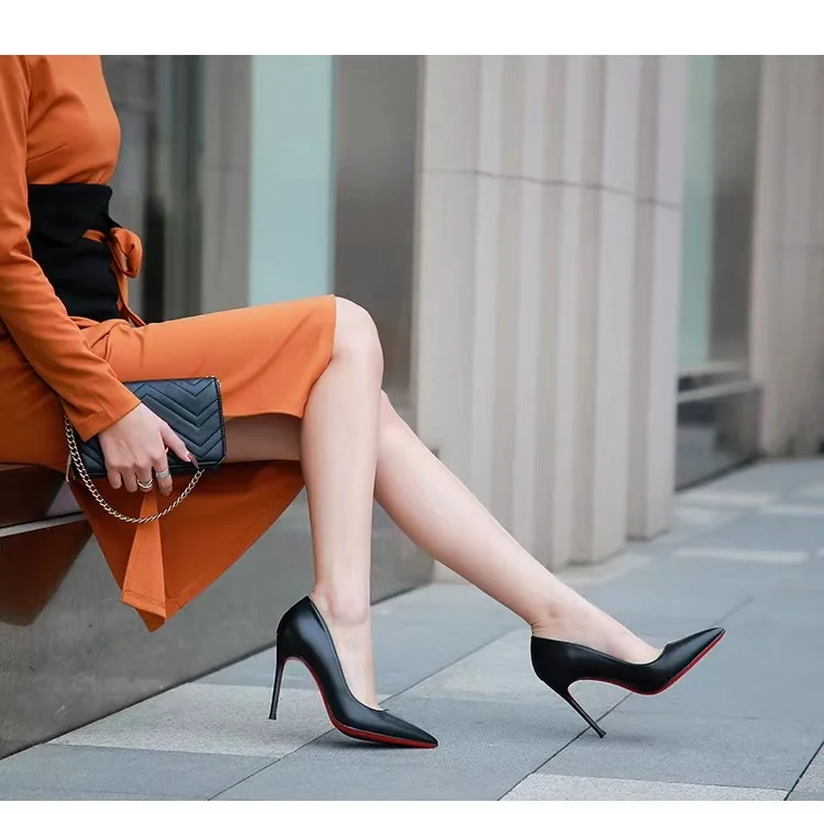 Saltos para mulheres dedo do pé apontado marca de luxo salto alto feminino sola vermelha bombas fundo vermelho fosco stiletto senhoras sapatos elegantes 12cm