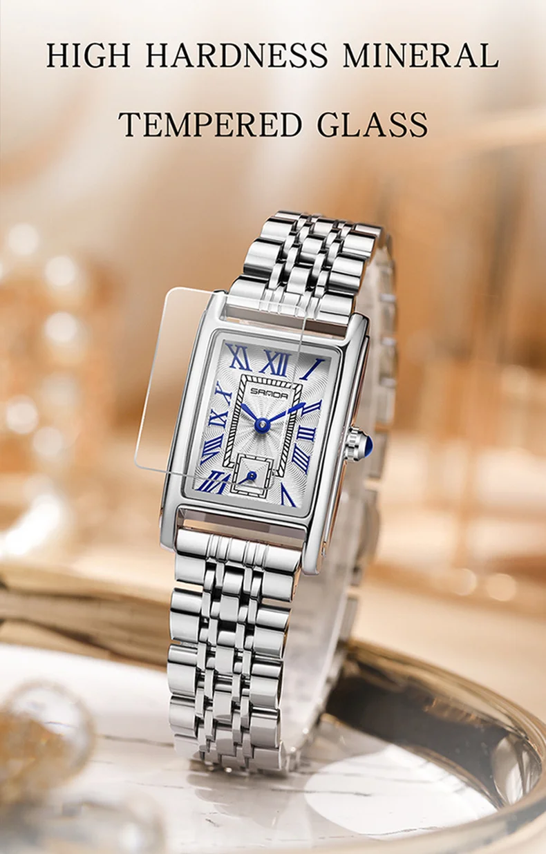 - > Sanda 1116 nova moda 2023 design elegante retângulo dial resistente à água movimento de quartzo negócios feminino relógio de pulso analógico
