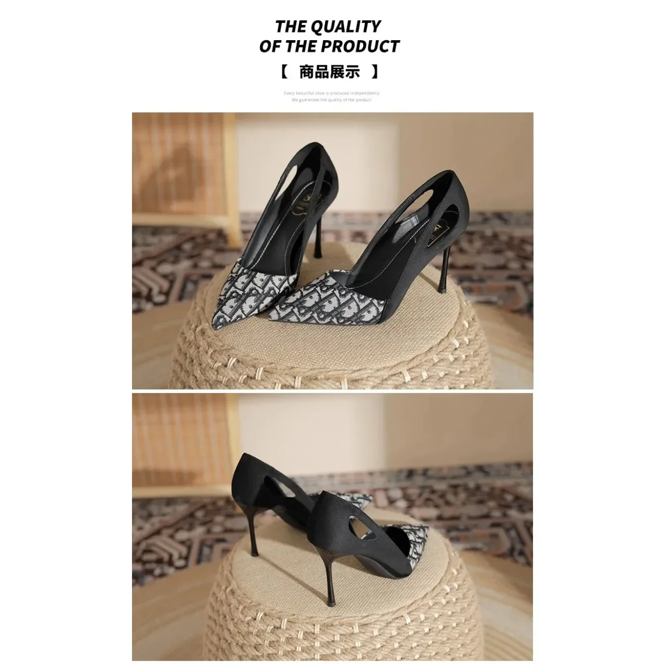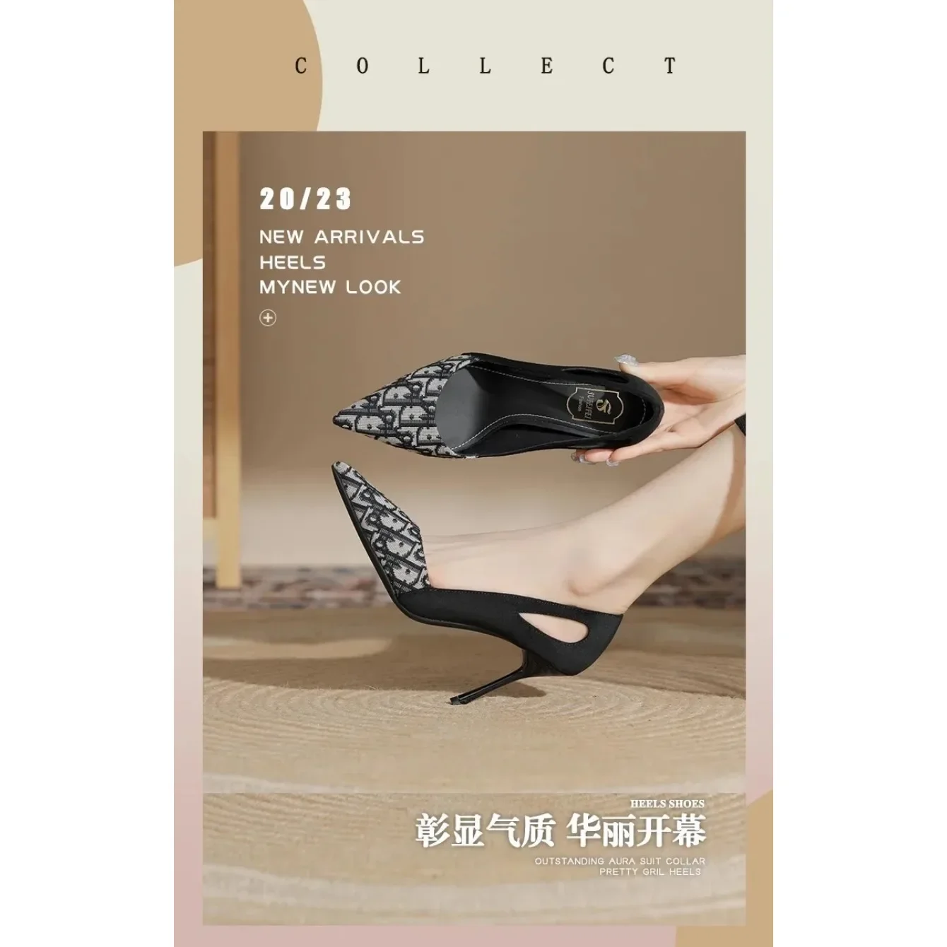 - > Sandálias bordadas para mulher, Salto Alto, Ria, Apontada, Casual, Verão, Novo, Luxo, Moda