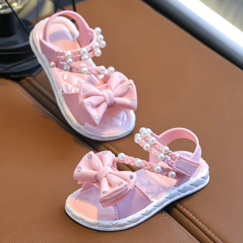 - > Sandálias elegantes para meninas – Versáteis e elegantes para ambientes internos/externos, sapatos prontos para a praia com borlas de contas, respiráveis e Li