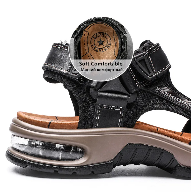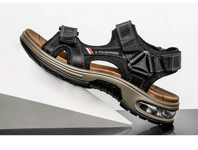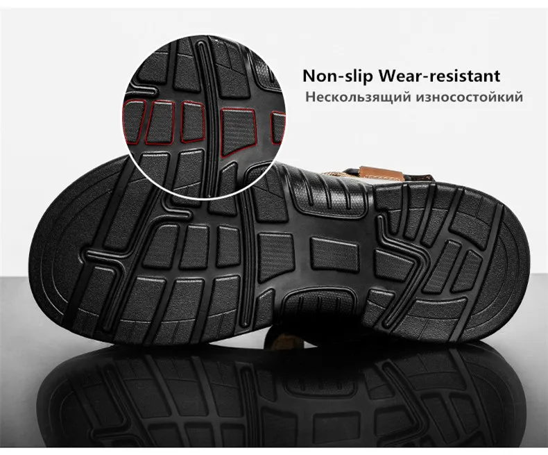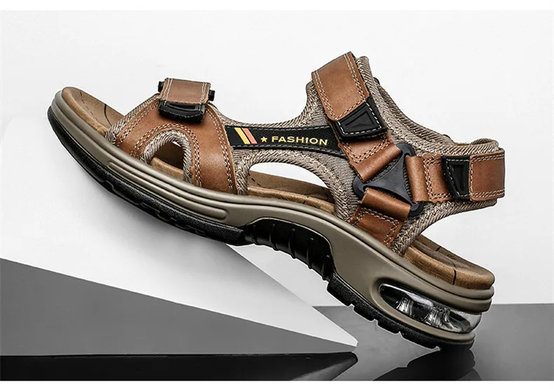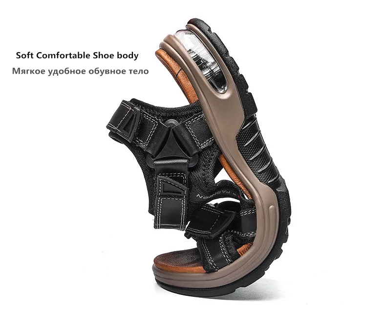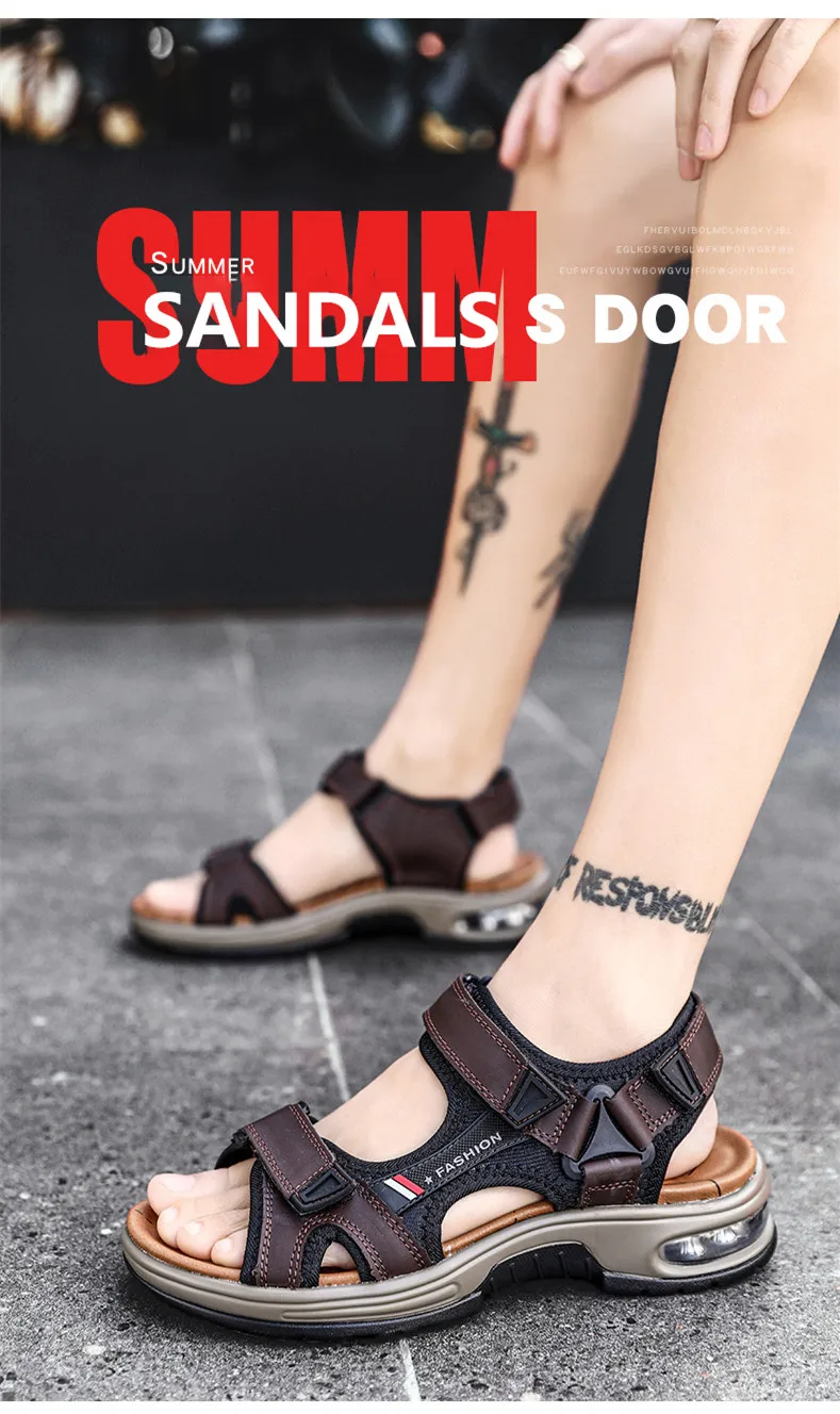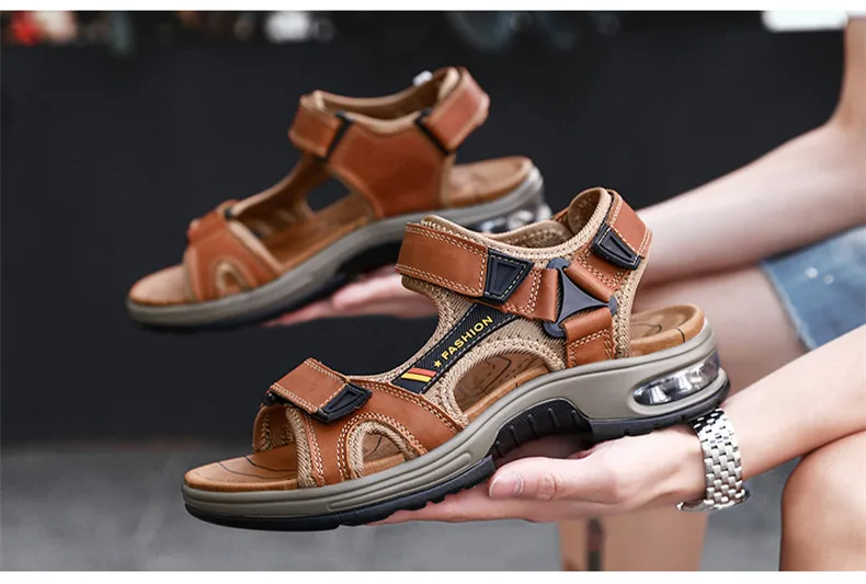 - > Sandálias masculinas de verão de couro genuíno, chinelos masculinos, gladiador, praia, macio, confortável, ao ar livre, sapatos vadeando, marca, 38-46