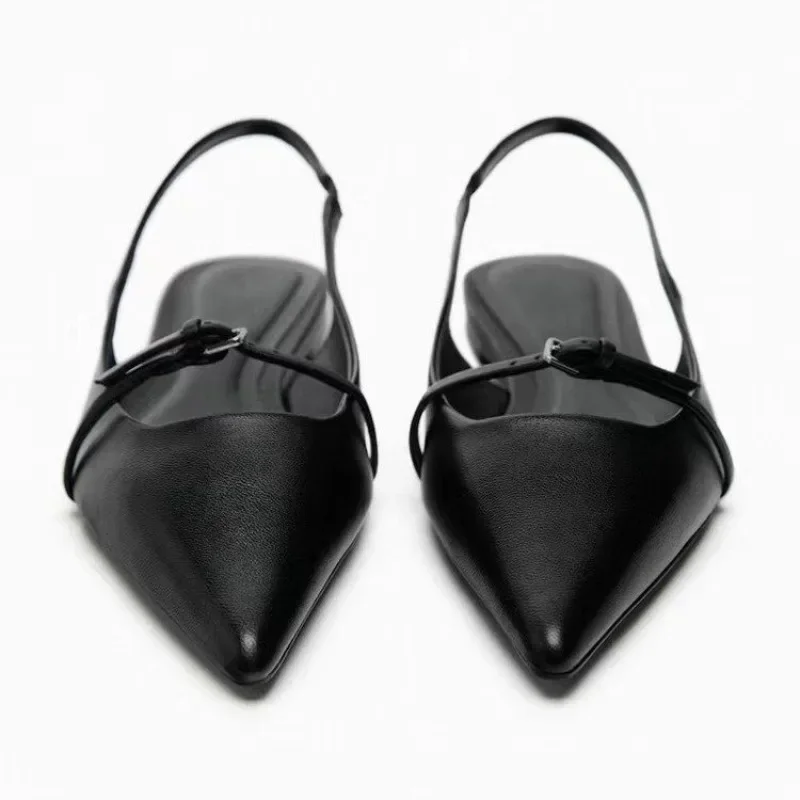 - > Sandálias pretas para mulheres, senhora de escritório mulas, sapatos baixos confortáveis, plus size, nova moda, verão