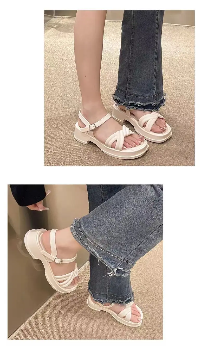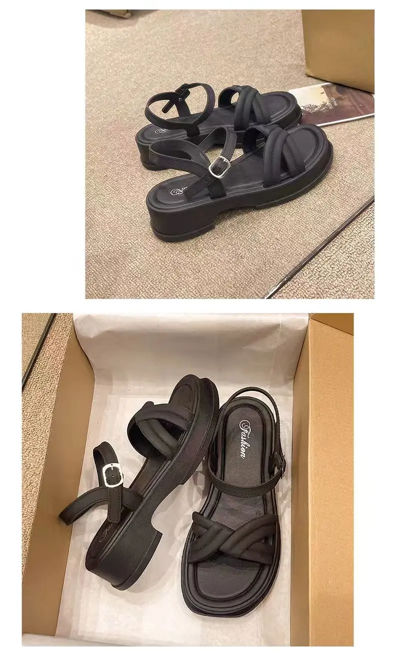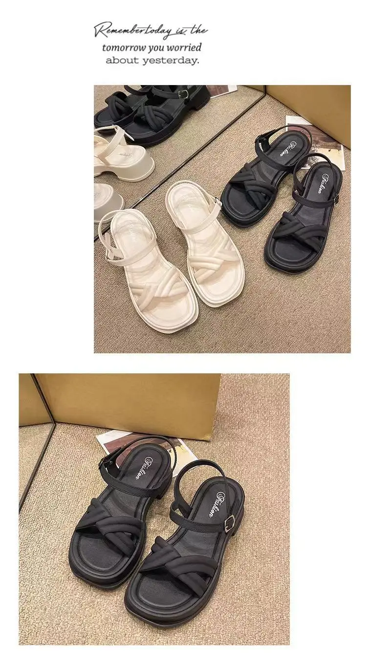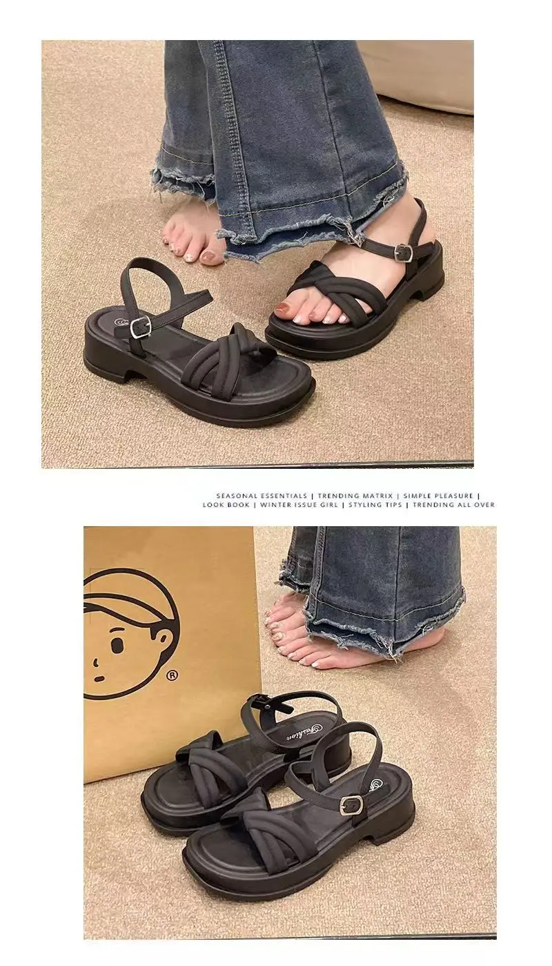 Sandálias Românticas de Salto sso para Mulheres, Tendência de Verão, Vintage, com Tiras Cruzadas, Estilo Romano, Chinelos ...
