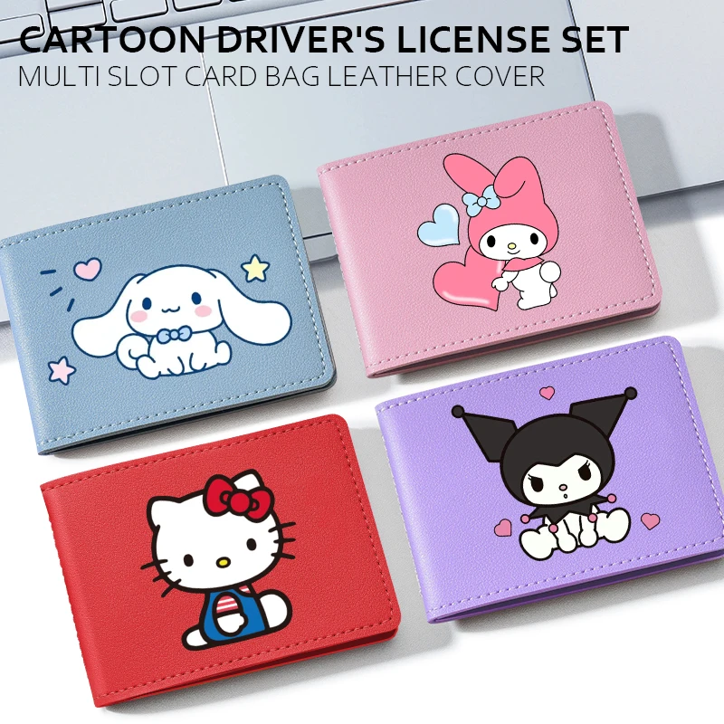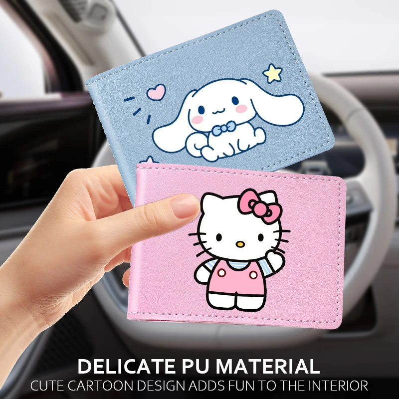 Sanrio pu titular da carteira de motorista olá kitty kuromi minha melodia capa de couro capa de condução de carro id de negócios carteira caso titular do cartão