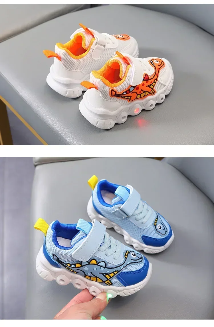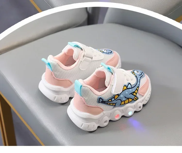 - > Sapatilhas LED bonitos dos desenhos animados das crianças, sapatos de malha respirável, sapatos iluminados, casual, iluminação, meninos, meninas, bebê