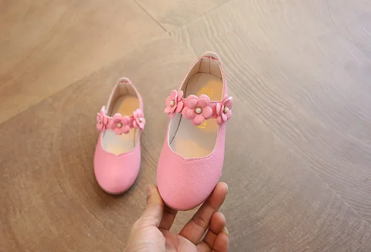 Sapato de couro feminino floral princesa, sapatilhas infantis, flor, doce, casamento, fofo, moda, primavera, outono, novo