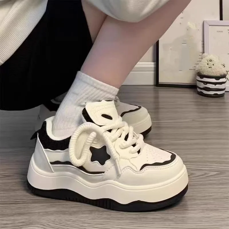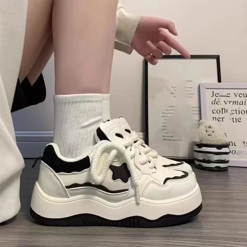 - > Sapatos brancos elegantes de sola grossa primavera e outono novos tênis casuais versáteis confortáveis tênis de sola grossa para mulher
