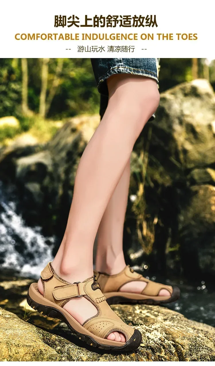 - > Sapatos de couro genuíno masculino, sandálias macias, chinelos confortáveis, modelos, sandálias, originais