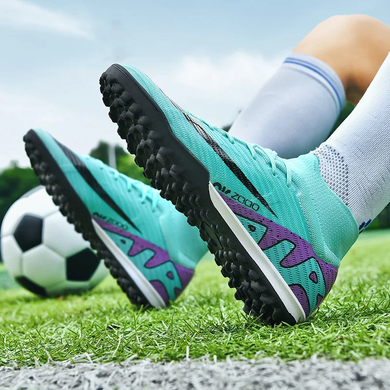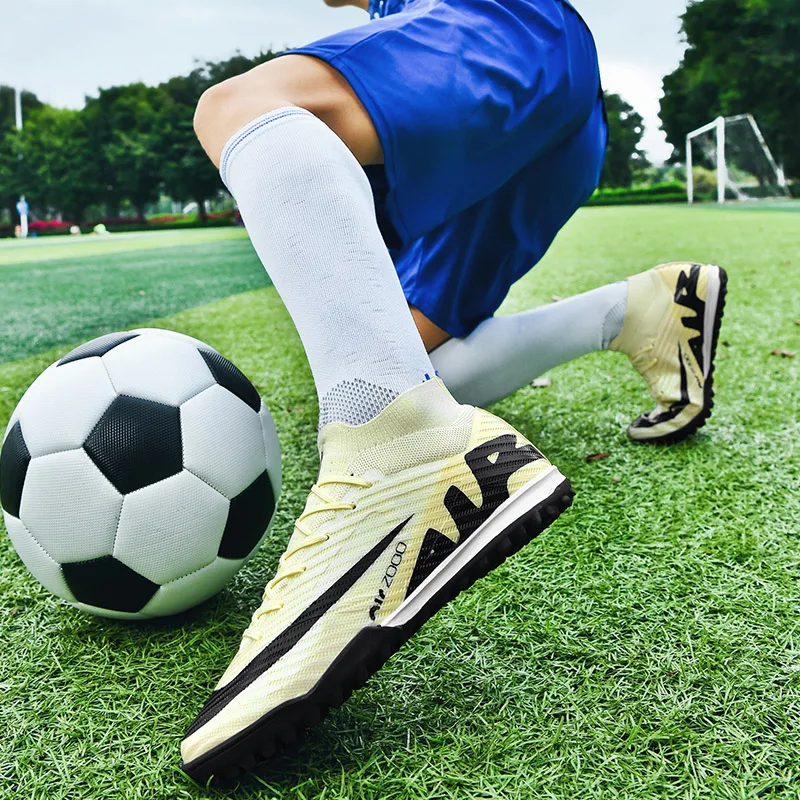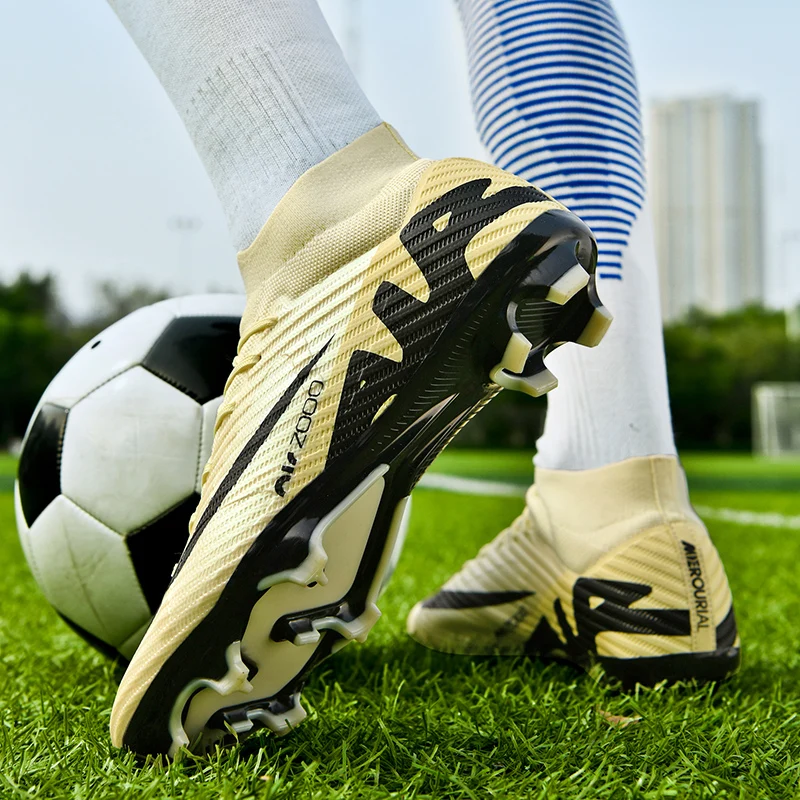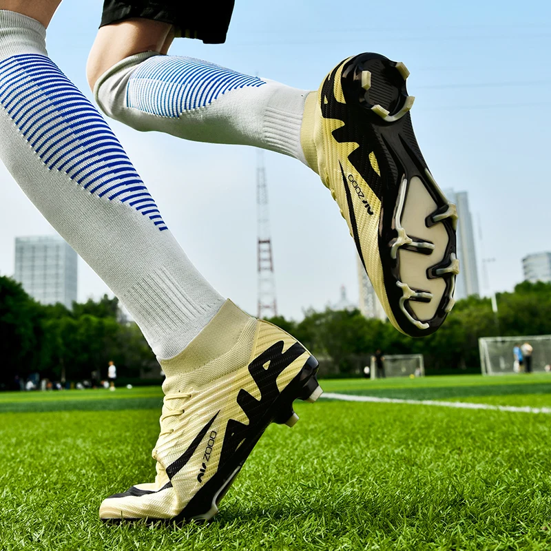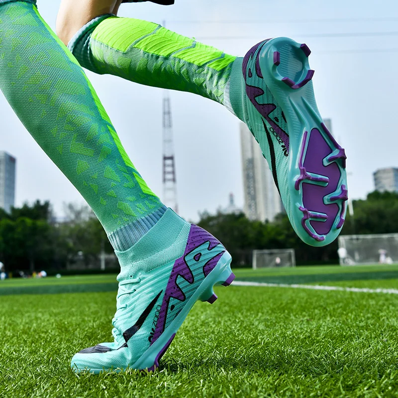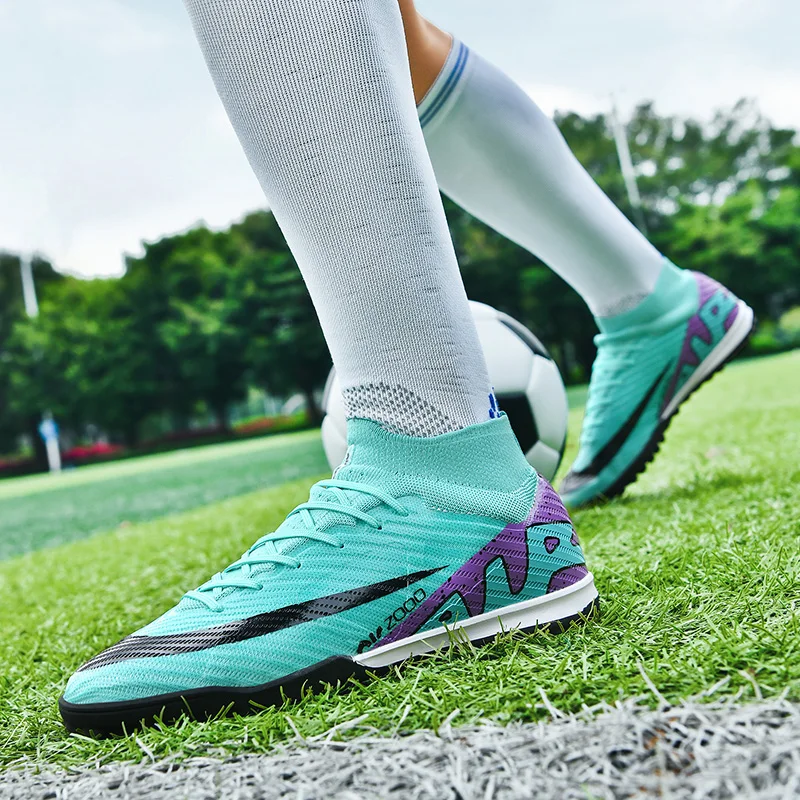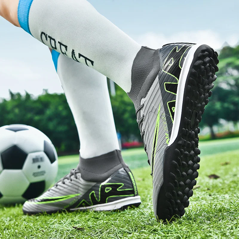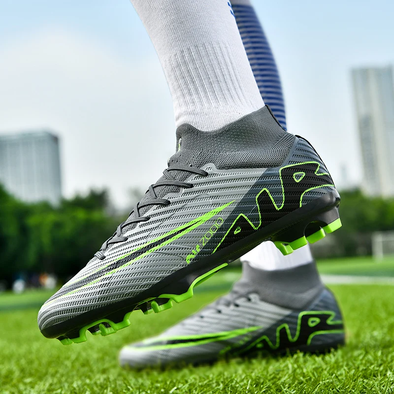 - > Sapatos de futebol masculino de sola FG, sapatos de gramado ao ar livre, grampos longos especiais, botas esportivas de equipe superior alta, resistência ao desgaste, tamanho 36-45