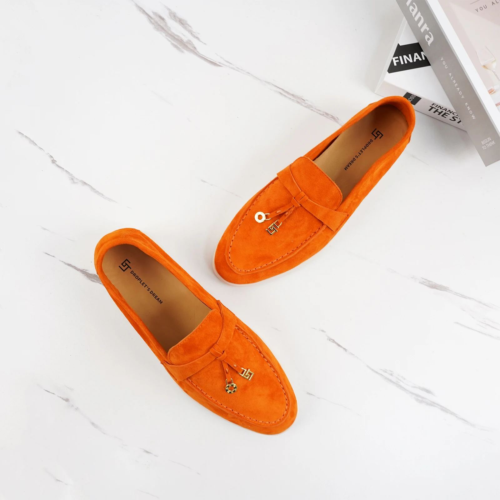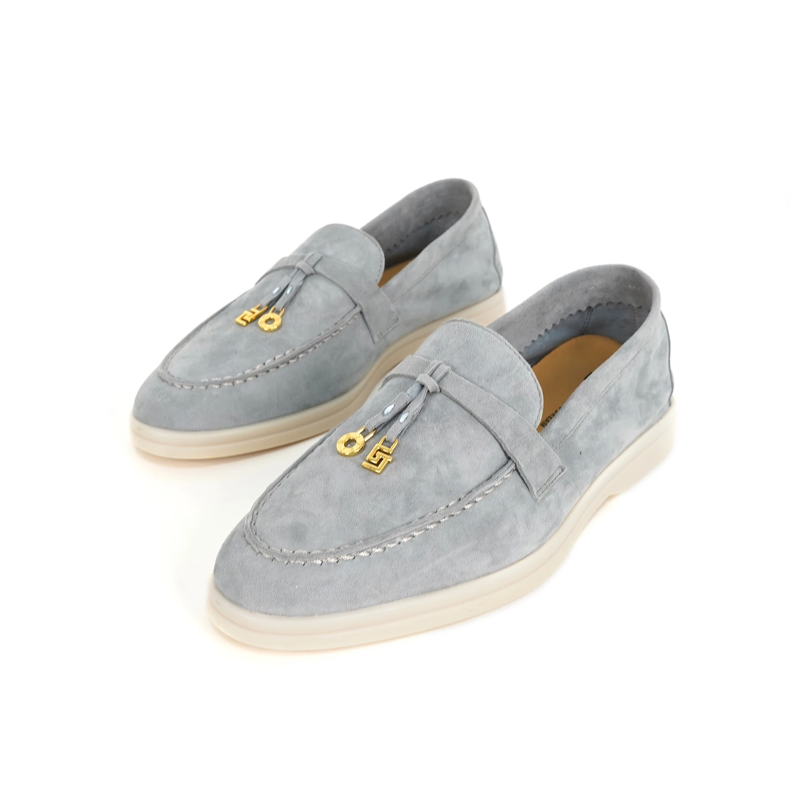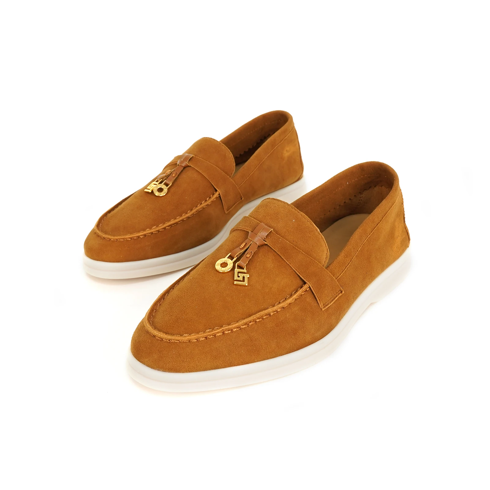 Sapatos de mula de camurça antiderrapante para mulheres, sapatos para dirigir, pingente de metal, marca de luxo, moda casual confortável, Le Fu