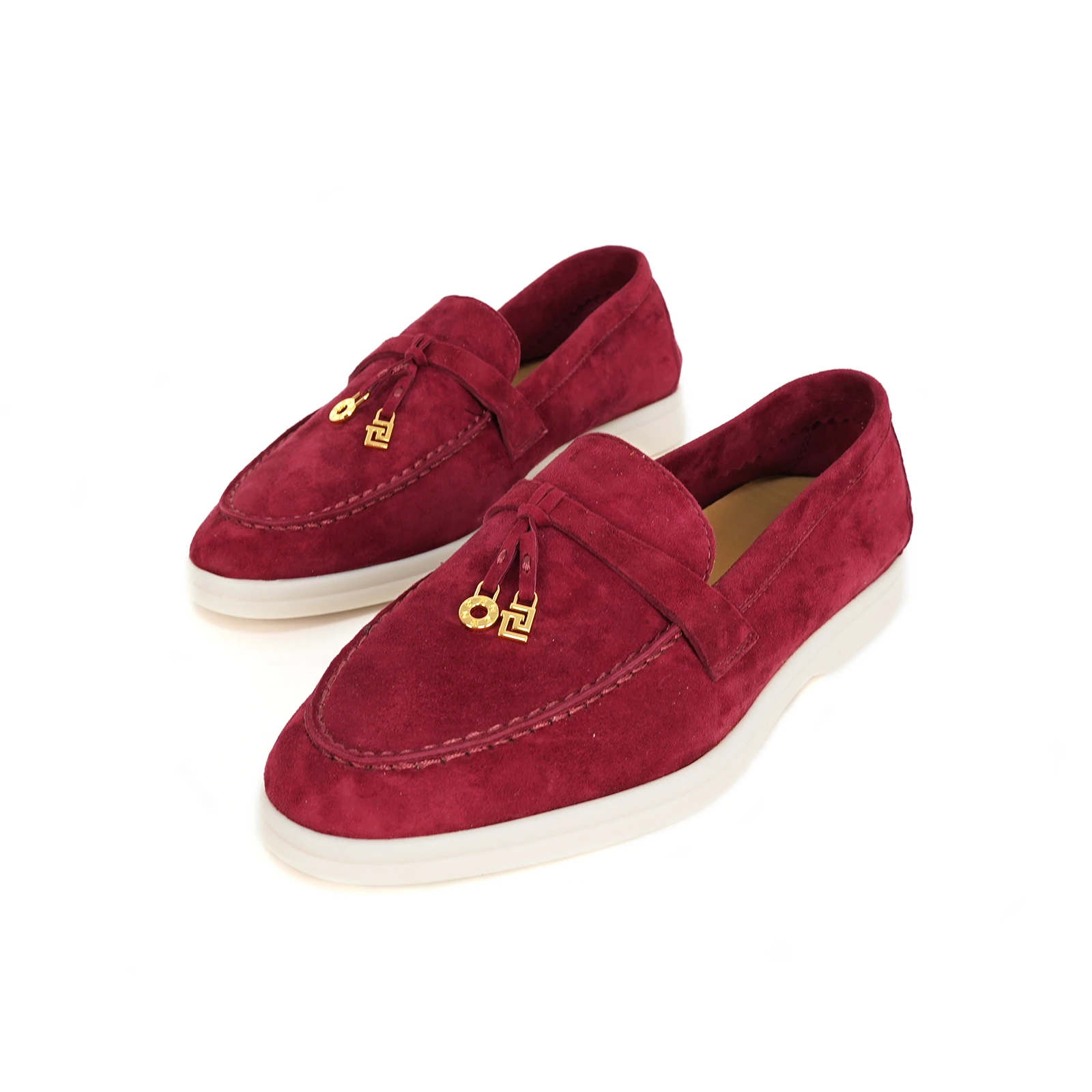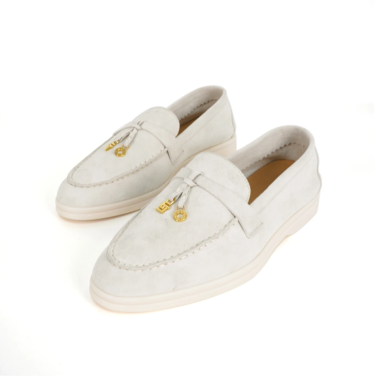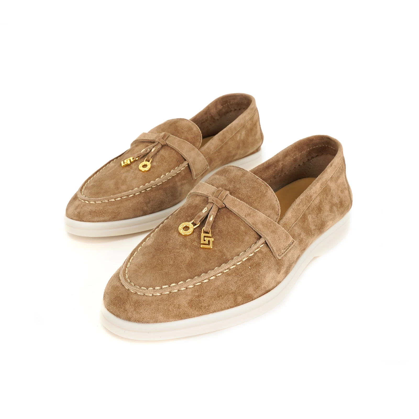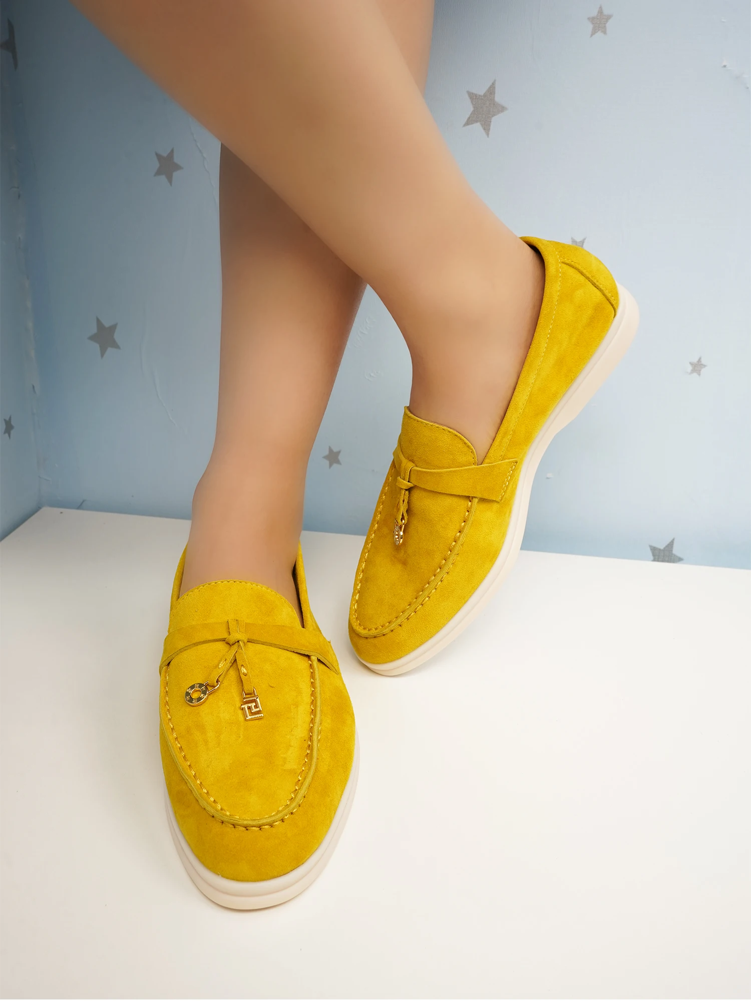 Sapatos de mula de camurça antiderrapante para mulheres, sapatos para dirigir, pingente de metal, marca de luxo, moda casual confortável, Le Fu