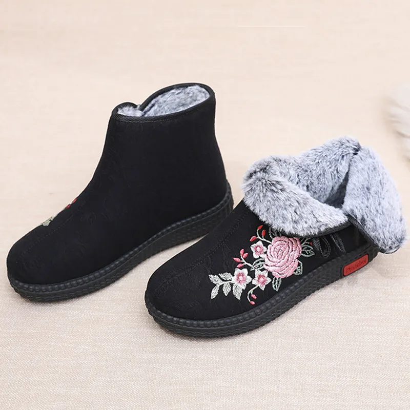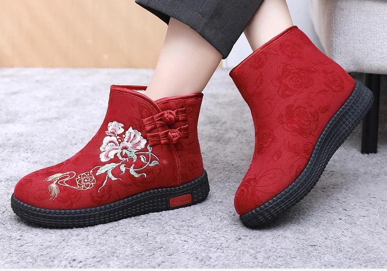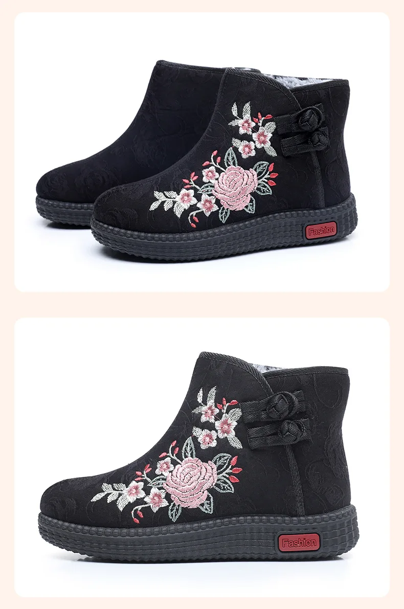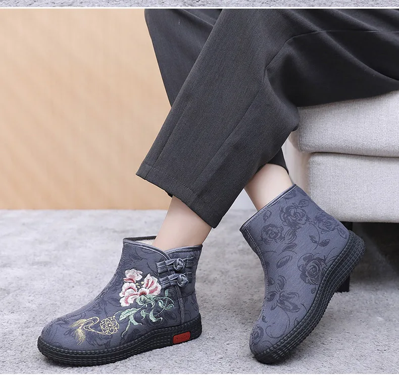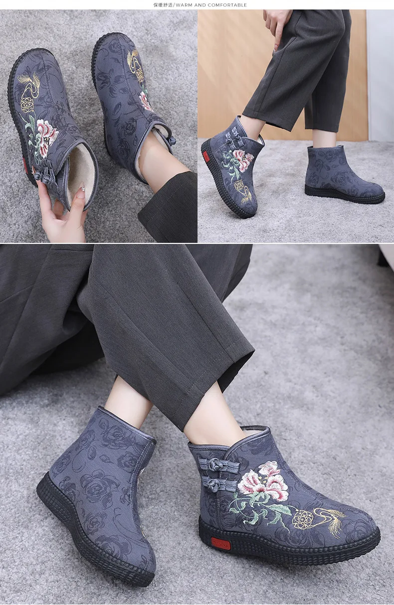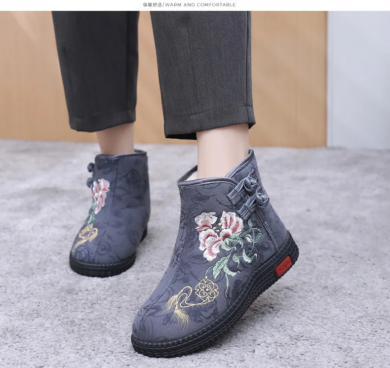 - > Sapatos de pano de inverno estilo étnico botas mujer sapatos femininos zapatos botas curtas quentes mulher bootie bordado algodão botas femininas