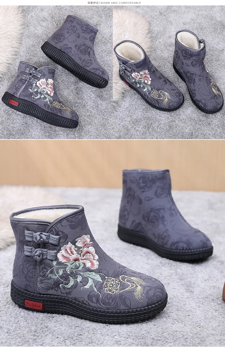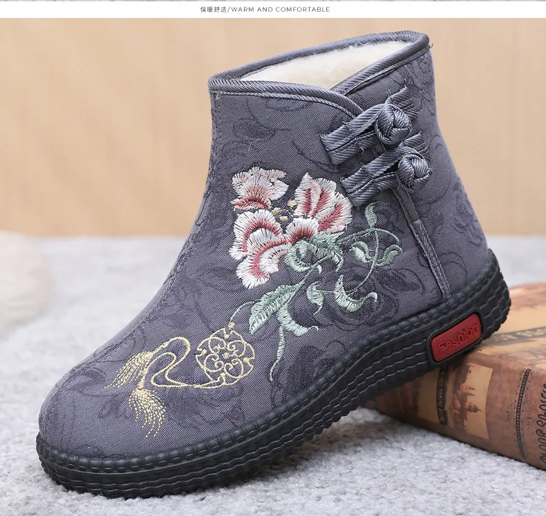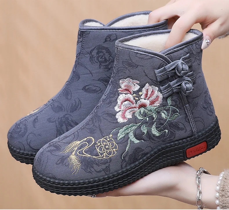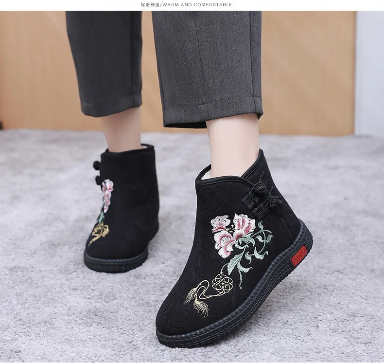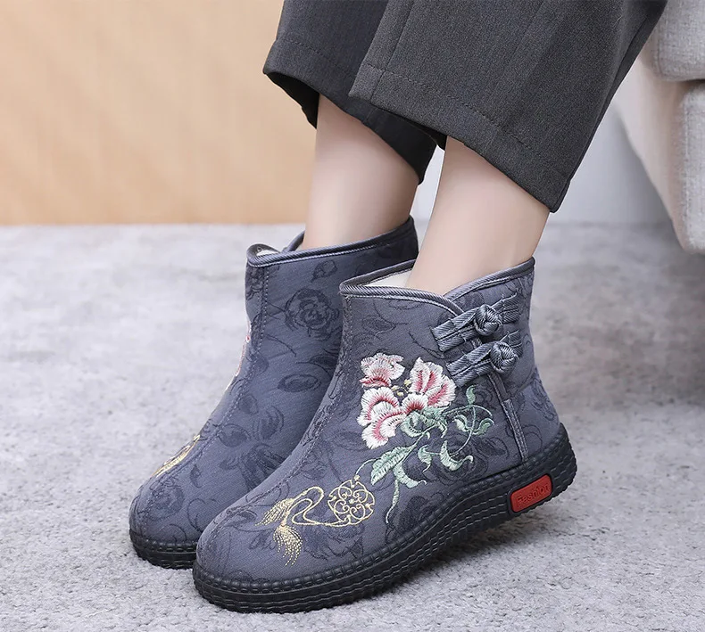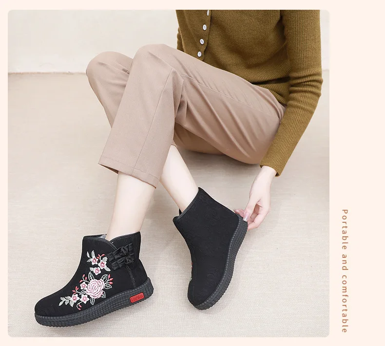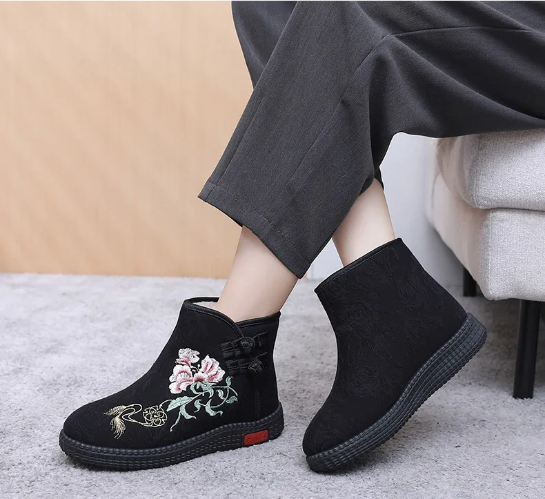 - > Sapatos de pano de inverno estilo étnico botas mujer sapatos femininos zapatos botas curtas quentes mulher bootie bordado algodão botas femininas