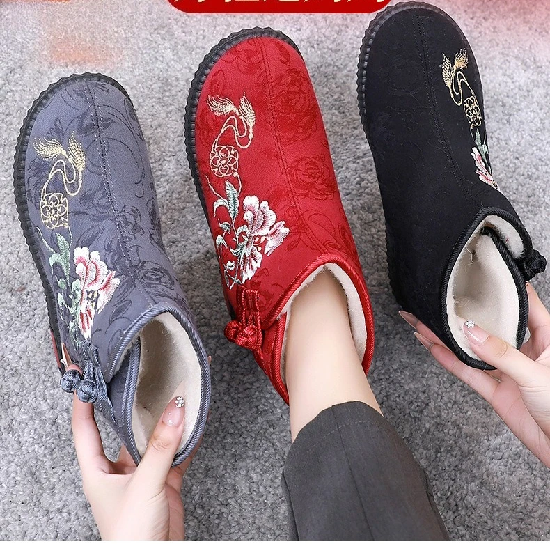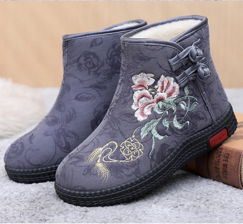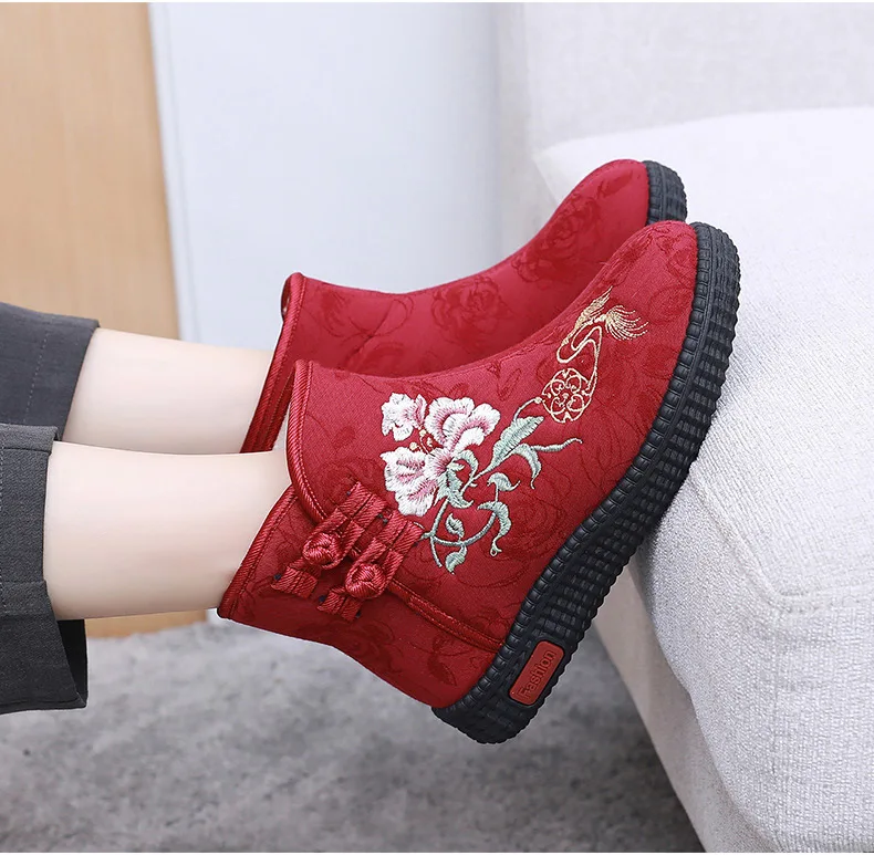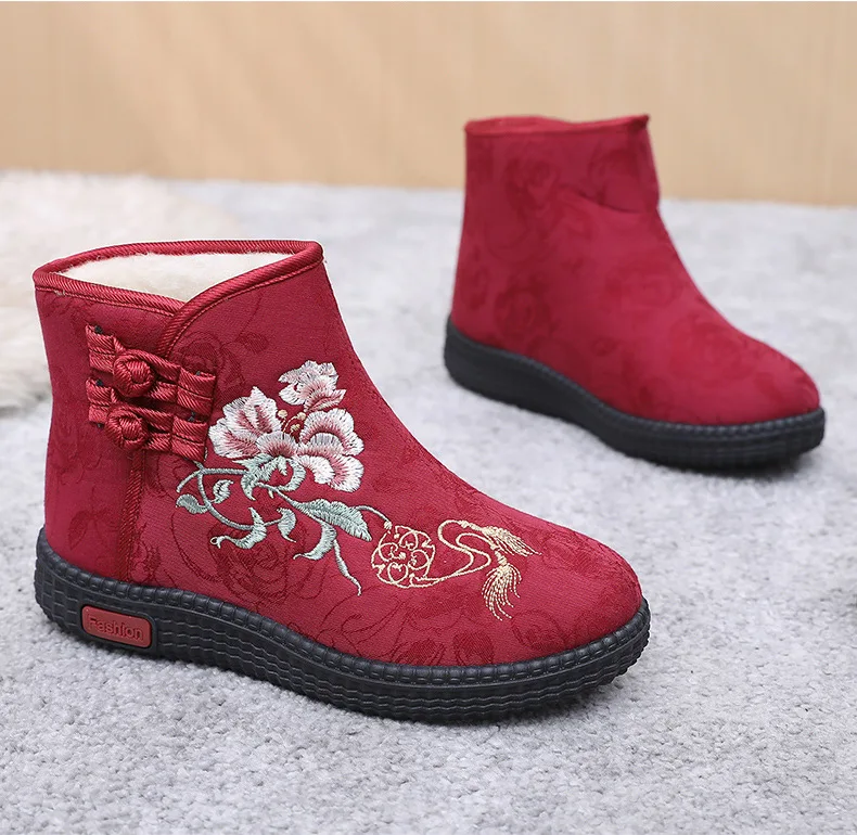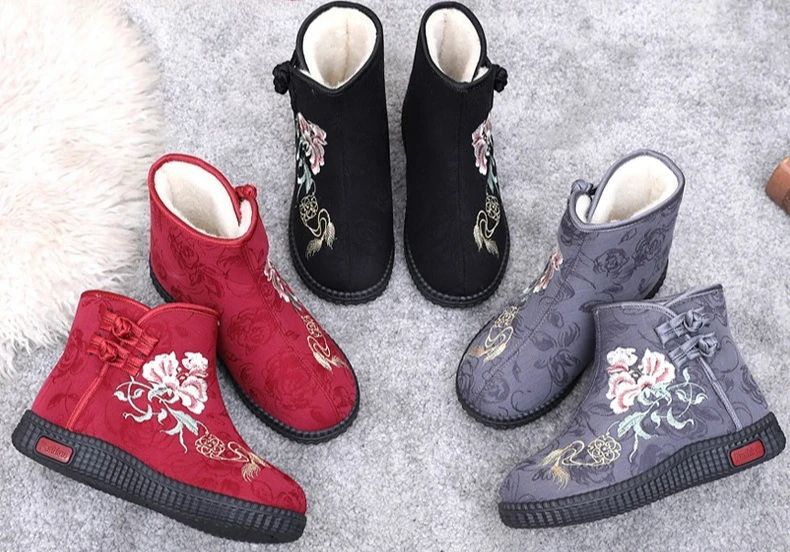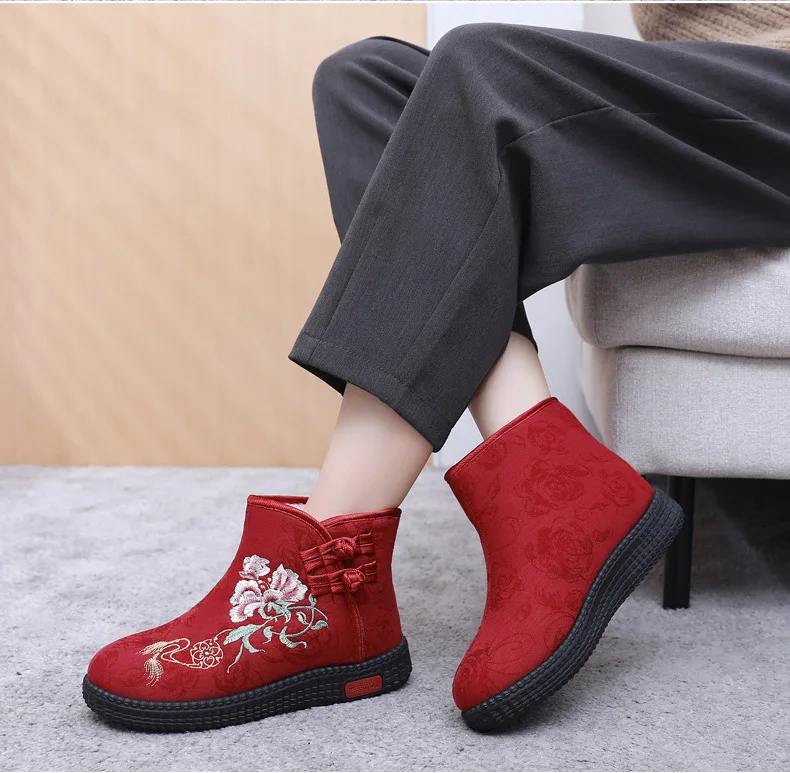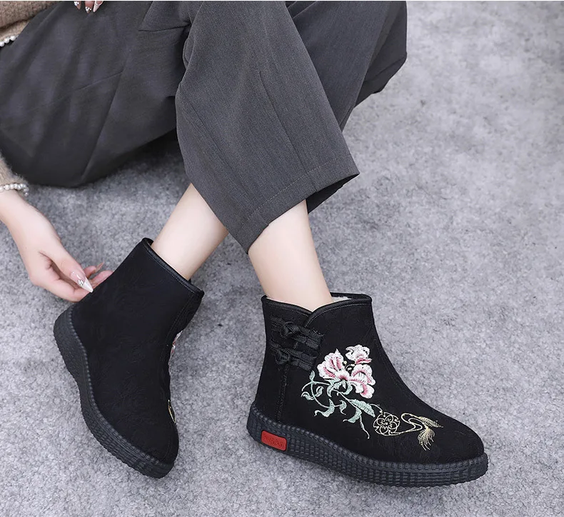 - > Sapatos de pano de inverno estilo étnico botas mujer sapatos femininos zapatos botas curtas quentes mulher bootie bordado algodão botas femininas