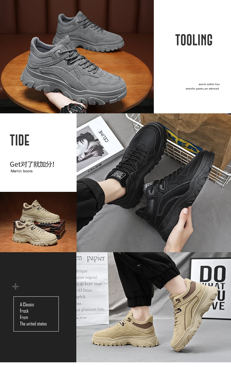 - > Sapatos de sola grossa masculina, botas de deserto, táticas calorosas, strappy nu, moda ao ar livre, novo, inverno, 2023