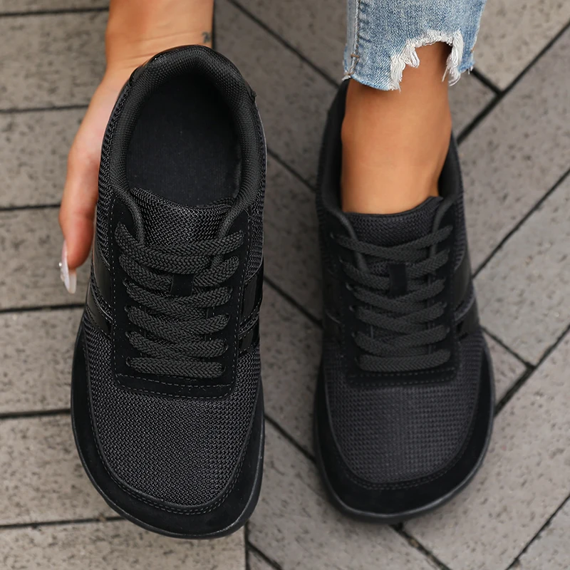- > Sapatos femininos tênis dedo do pé largo descalço casual ampla última moda lona preto sapatos de placa plana malha respirável sapatos masculinos