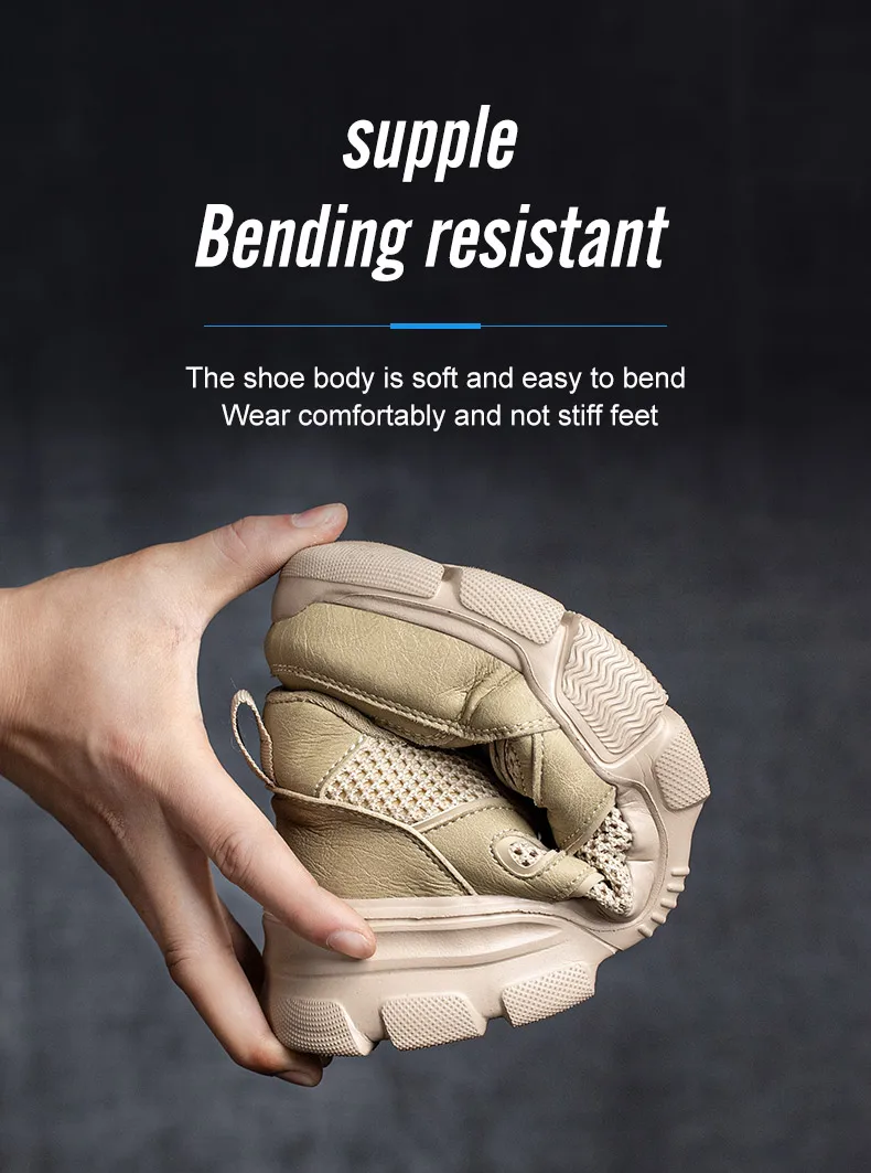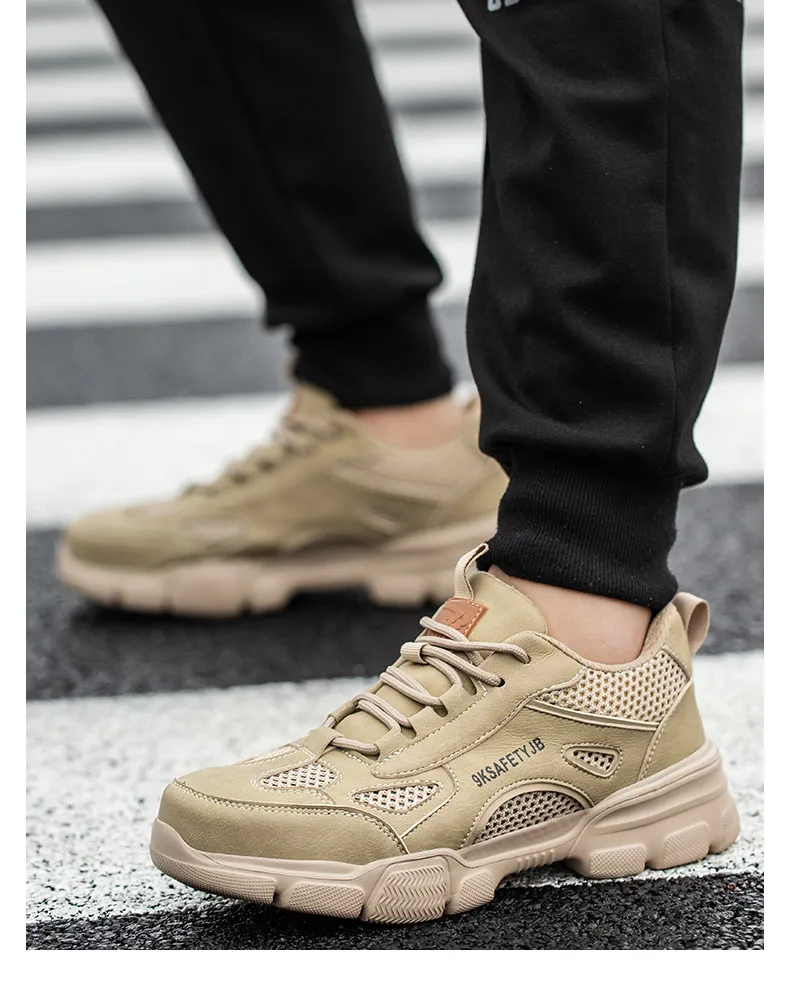 - > Sapatos Hollow Breathable Steel Toe Work para homens e mulheres, botas de segurança leves, anti-escorregadias, tênis masculino