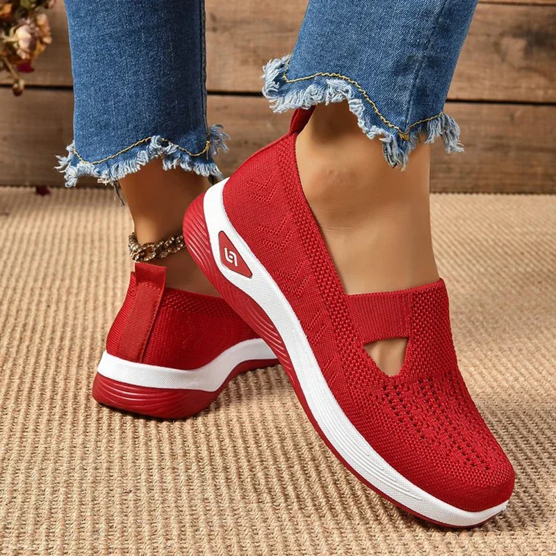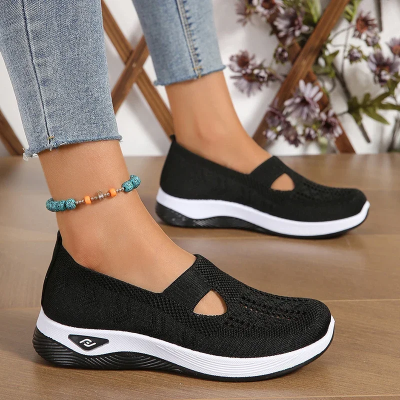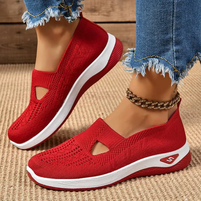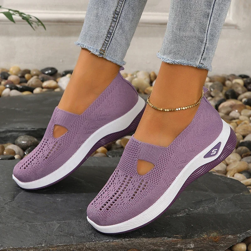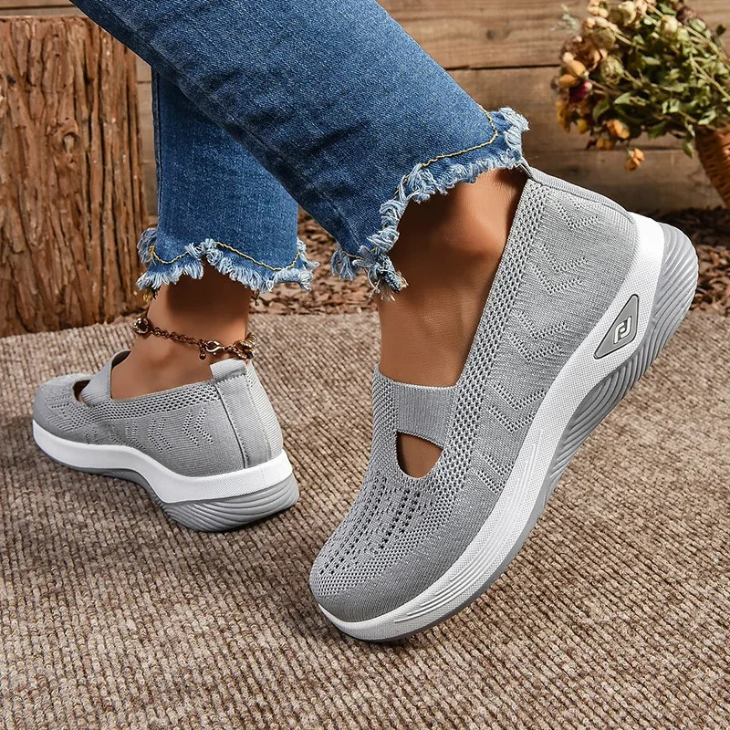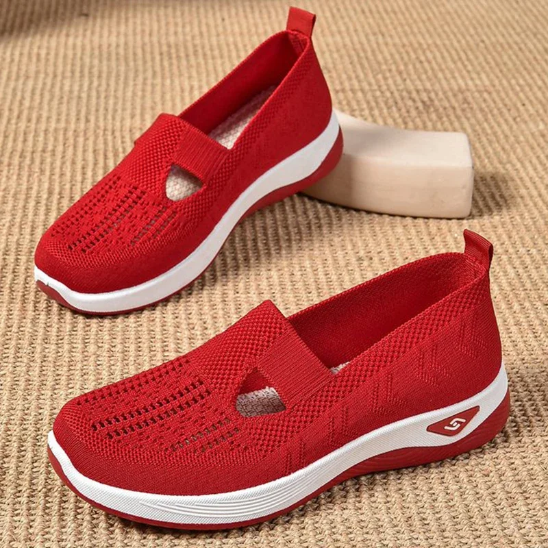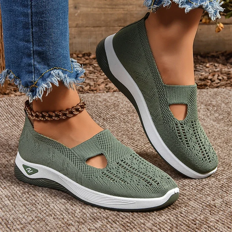 - > Sapatos mistos de tricô elástico para mulheres, mocassins de plataforma respirável de malha externa, sapatilhas leves resistentes ao desgaste, verão