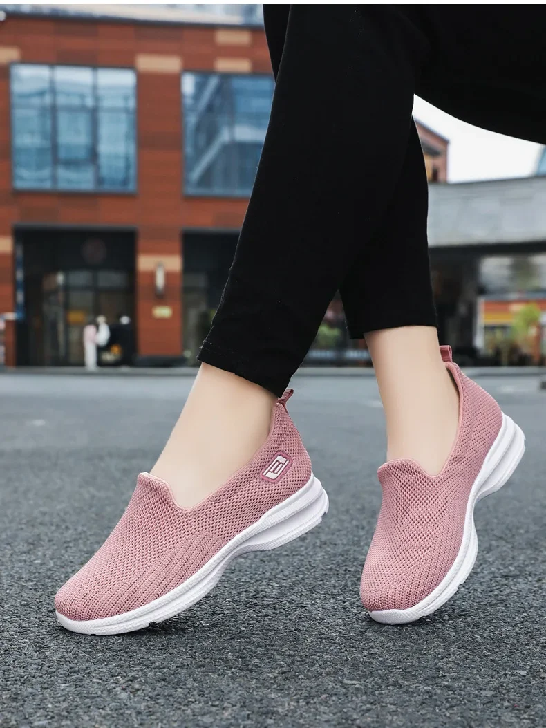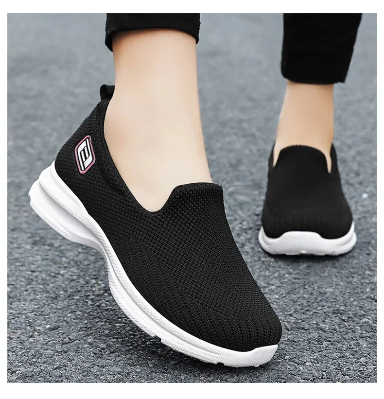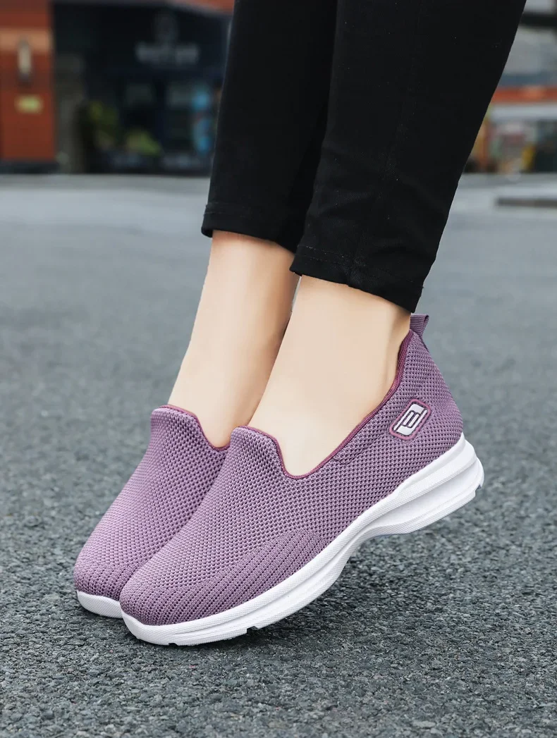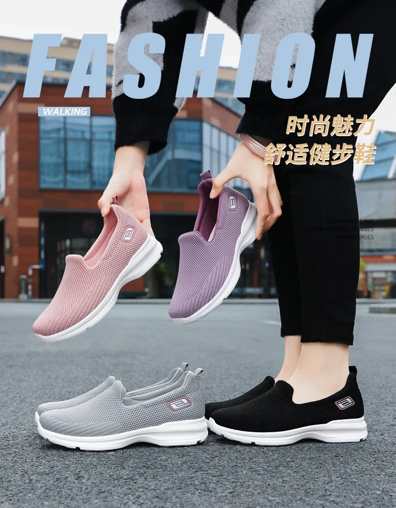 Sapatos para mulheres respirável ir caminhada tênis para senhoras respirável deslizamento em lona apartamentos baixo superior esporte tênis