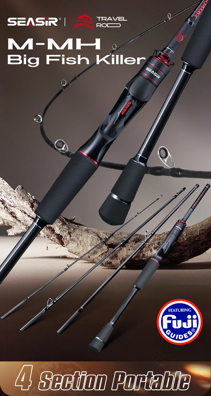 Seasir Salminus XF M/MH Vara de pesca giratória e fundição 1.83M Vara de viagem completa de 4 peças de energia pesada