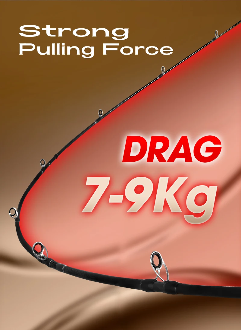Matérias-primas de alta resistência + tecnologia de produção de ponta.Após testes rigorosos, o modelo mais rígido pesa mais de 9000g verticalmente.Muito superior a varas de pesca semelhantes.