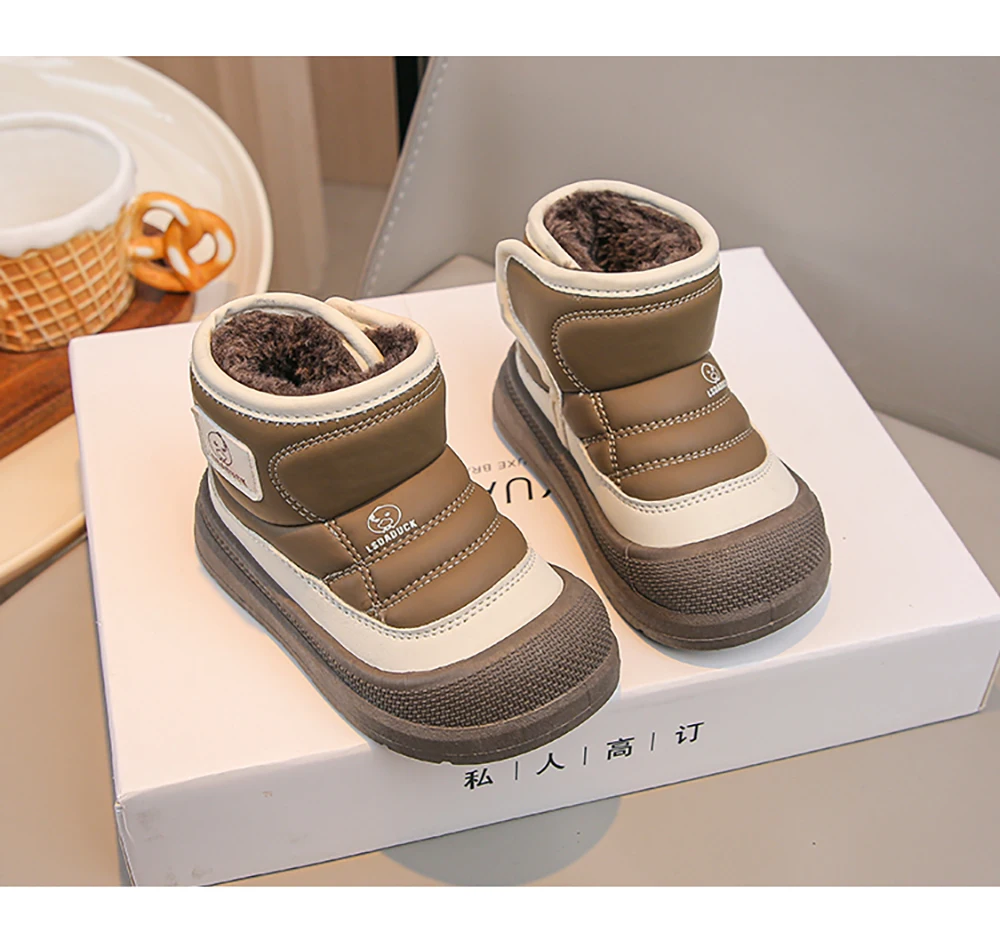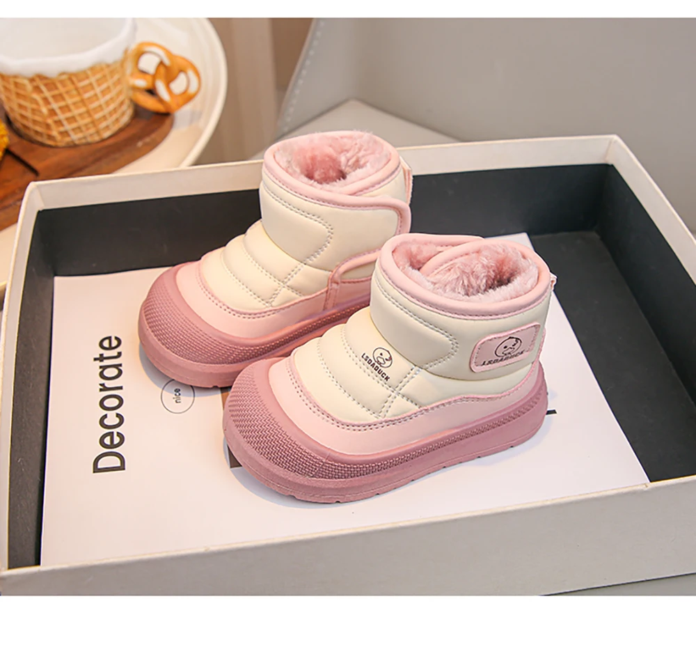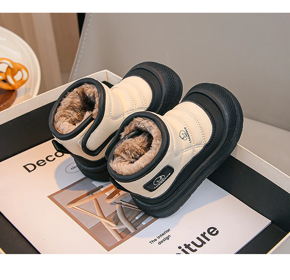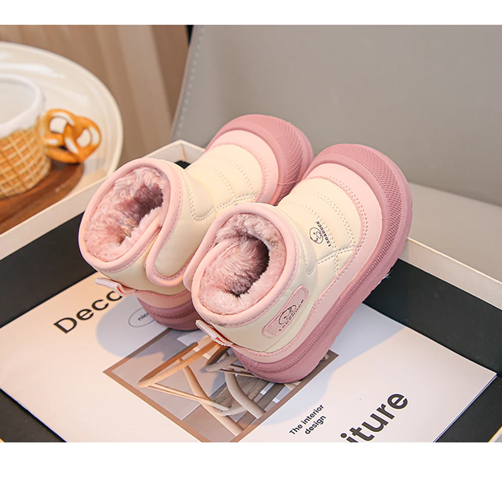 - > Sem cola inverno botas de neve de pelúcia para crianças grosso quente menino menina sapatos de algodão à prova dwaterproof água botas de inverno do miúdo sapato de veludo