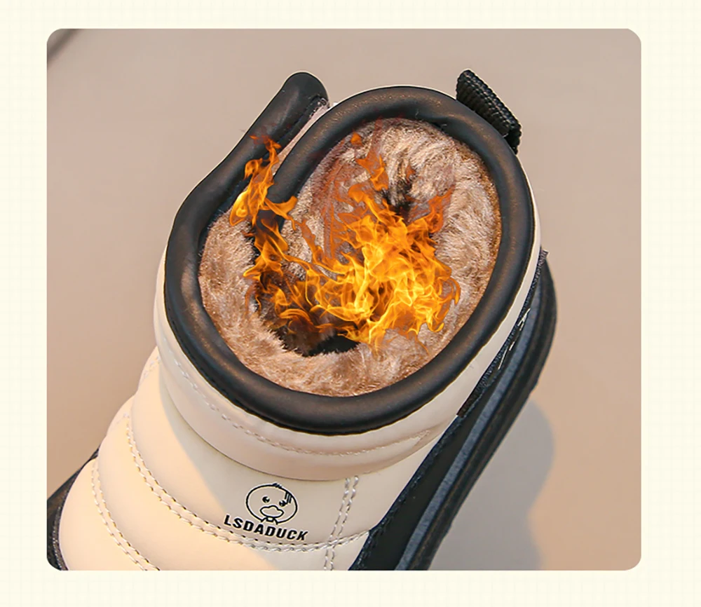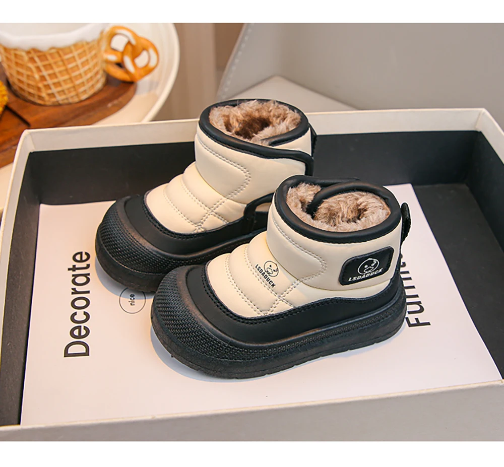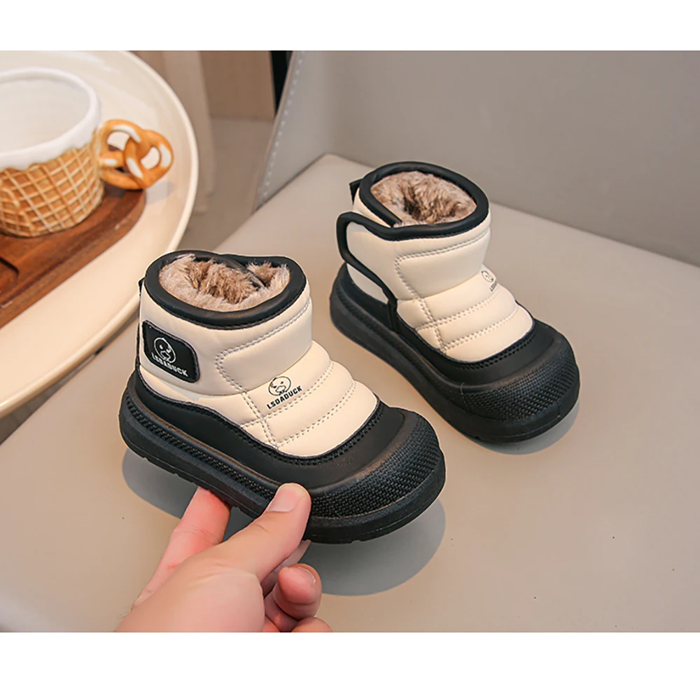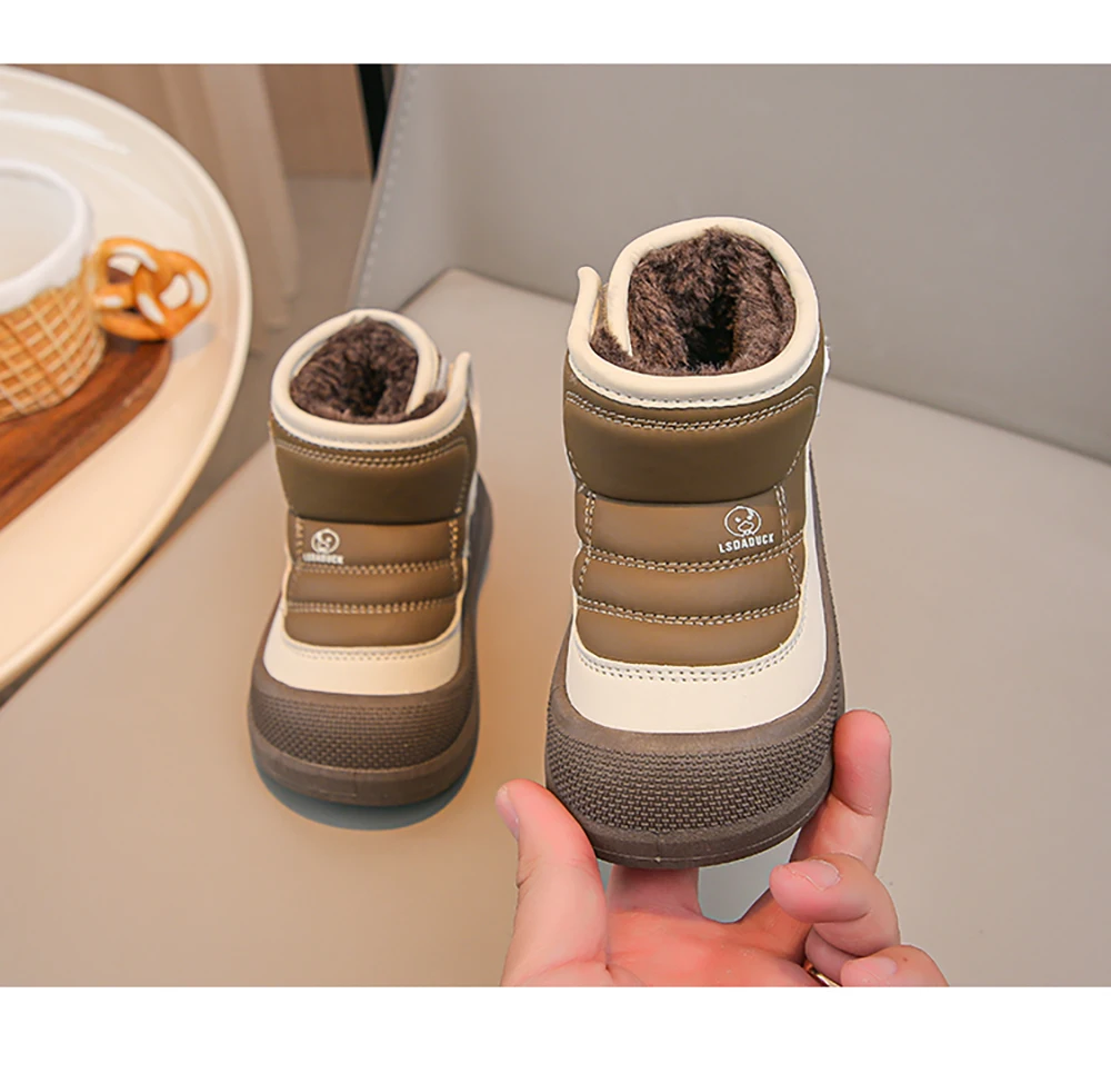 - > Sem cola inverno botas de neve de pelúcia para crianças grosso quente menino menina sapatos de algodão à prova dwaterproof água botas de inverno do miúdo sapato de veludo